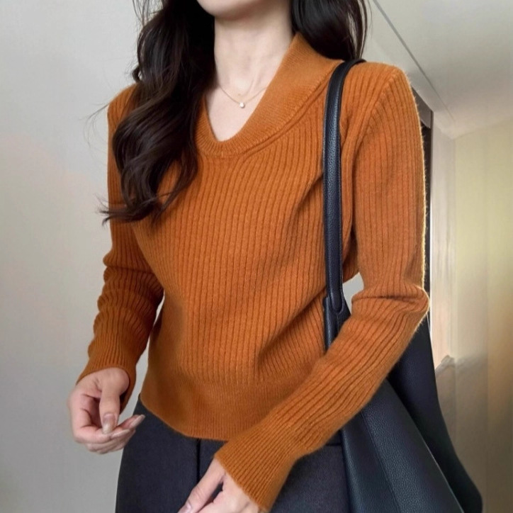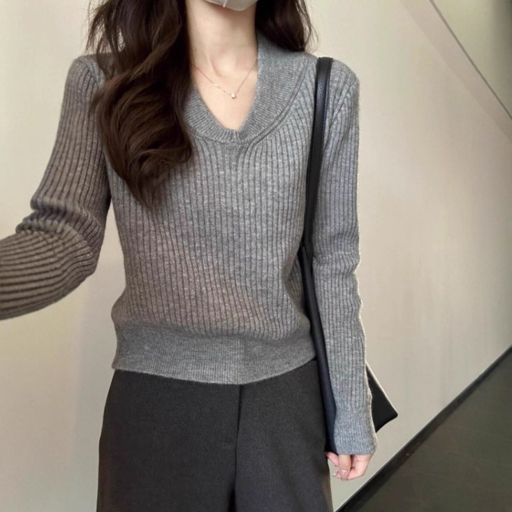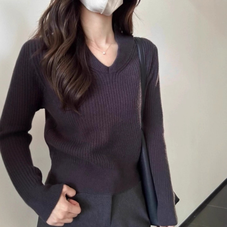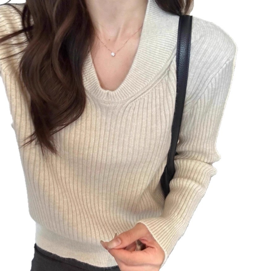 秋季ootd穿搭V领针织打底衫女内搭秋冬高级感可外穿加厚韩系上衣