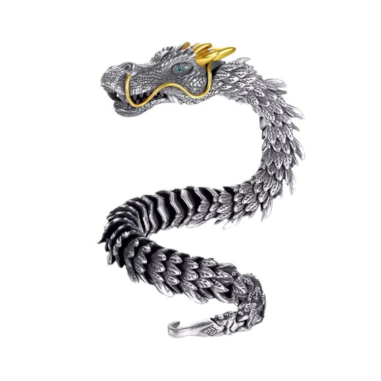 新款手工立体手链男士个性霸气复古龙头收藏级灵动龙形手环高级感