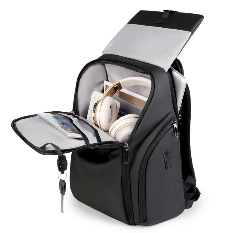 休闲商务电脑包背包男一体箱式设计双肩包印LOGO翻盖双肩包现货