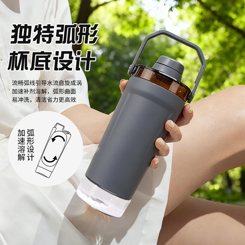 大容量双层手提摇摇杯蛋白粉不锈钢健身保温杯户外便捷登山水壶
