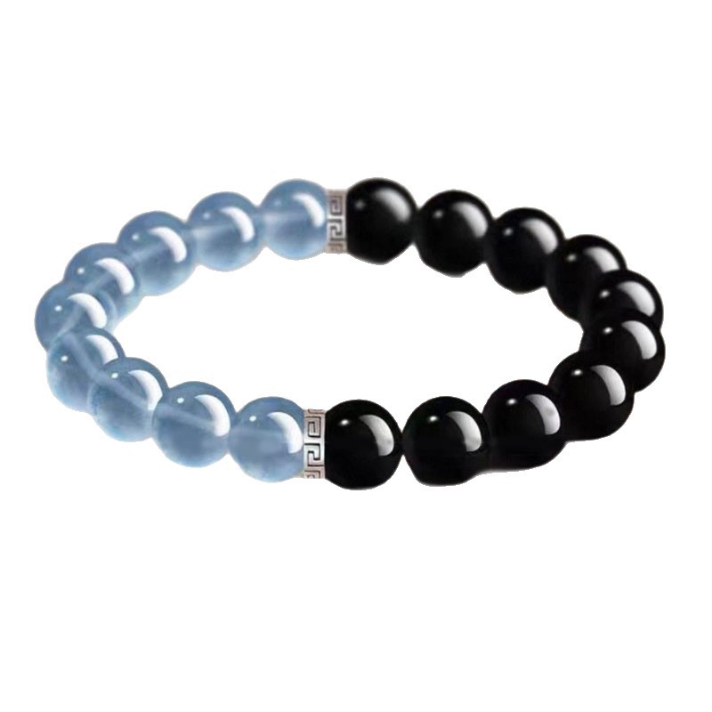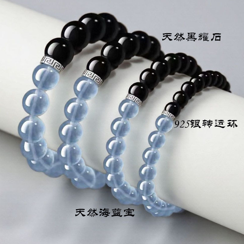 | 颜色 | 珍藏级【半圈乌金黑曜石+半圈海蓝宝】珠径约8mm | 颜色 | 珍藏级【半圈乌金黑曜石+半圈海蓝宝】珠径约10mm |