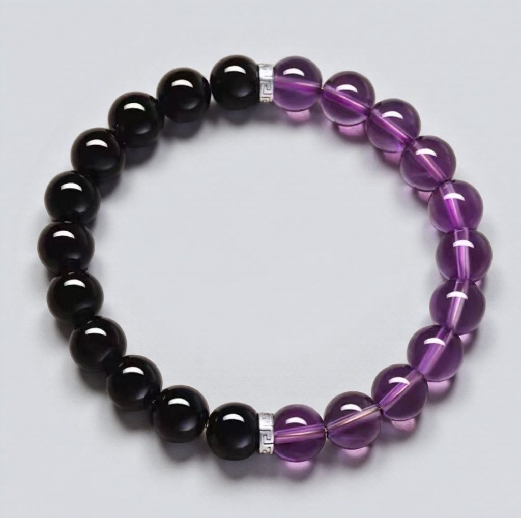 | 颜色 | 珍藏级【半圈乌金黑曜石+半圈紫水晶】珠径约8mm | 颜色 | 珍藏级【半圈乌金黑曜石+半圈紫水晶】珠径约10mm |