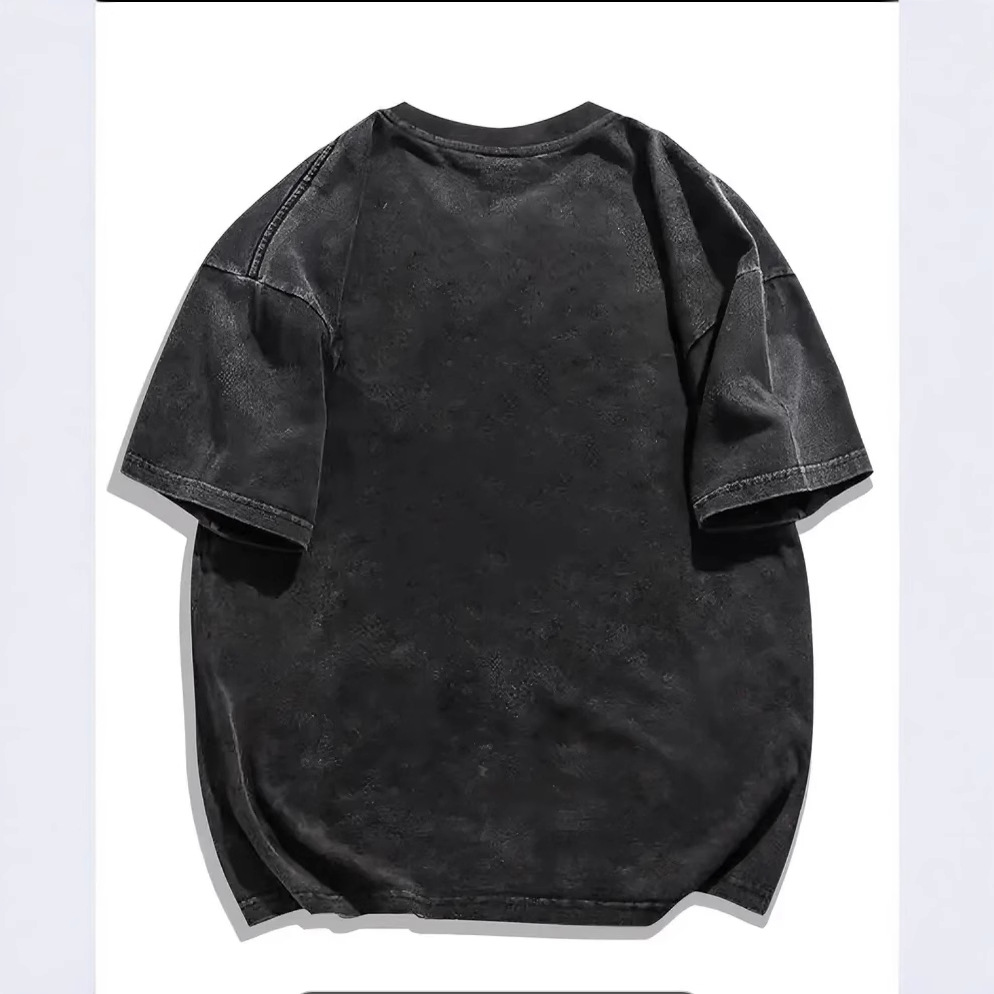 嘻哈风水洗做旧重磅短袖T恤男女夏季oversize复古潮牌宽松慵懒感