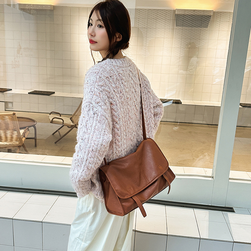 美拉德复古斜挎包通勤包女2025新款韩国邮差包百搭大容量单肩包