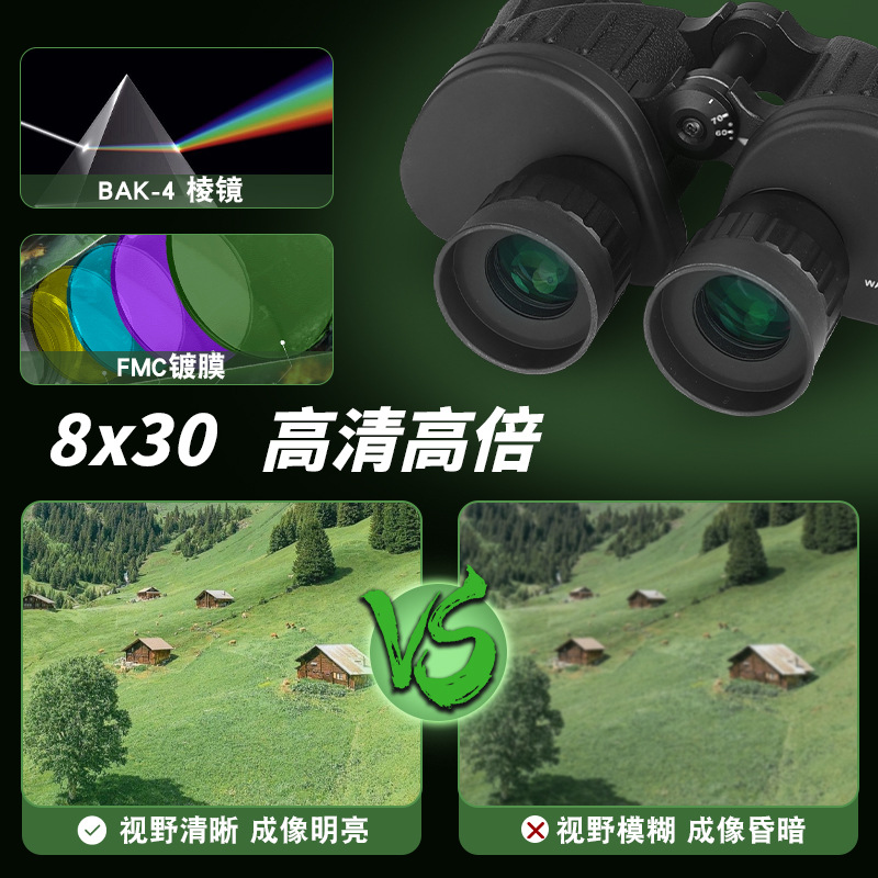 新款8x30双筒望远镜高倍高清微光夜视带十字坐标6X30双筒望远镜