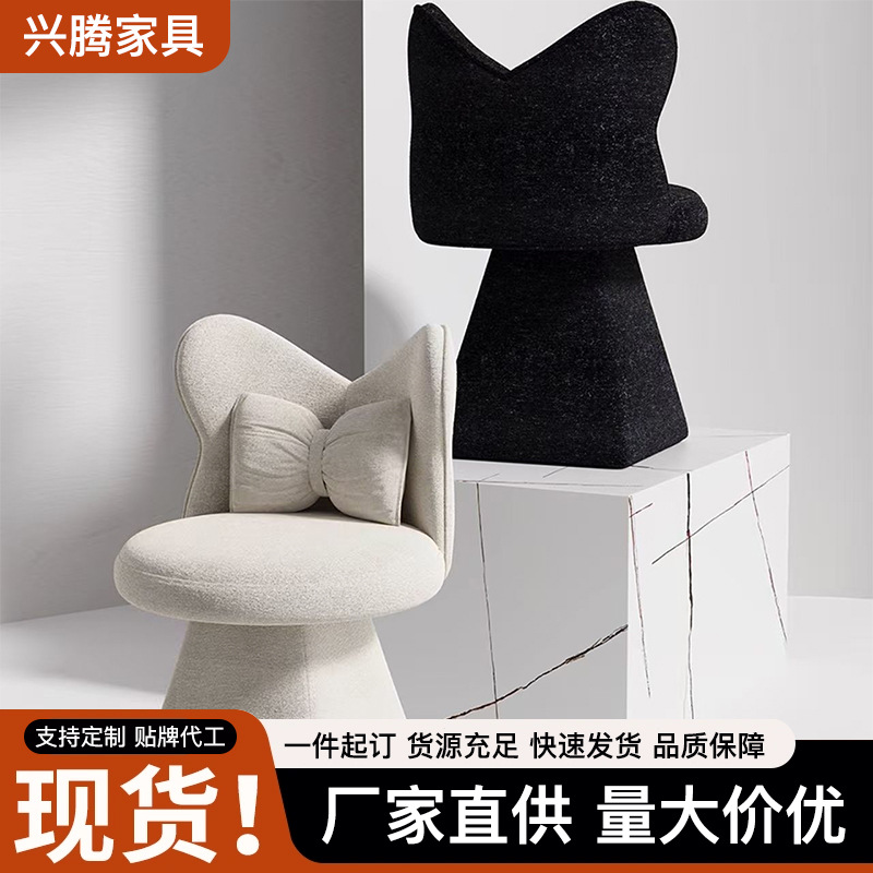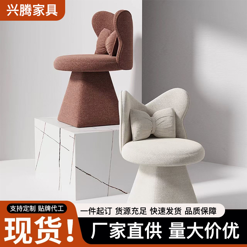 时尚简约蝴蝶结美容椅高质感带靠背化妆凳法式轻奢舒适美甲椅子