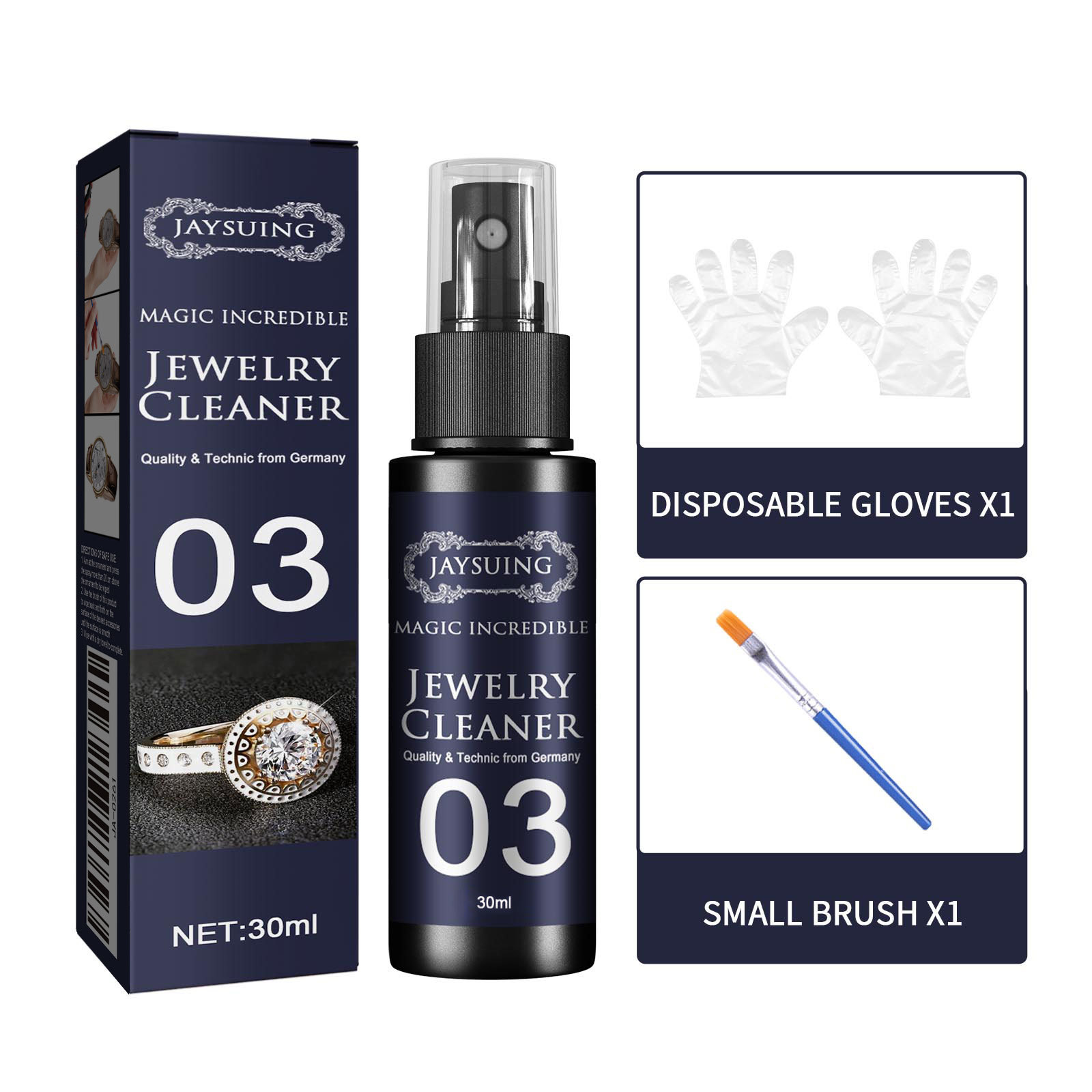 | 货号 | qjqw009-jaysuing珠宝清洁剂30ml套装 | 净含量 | 30 |