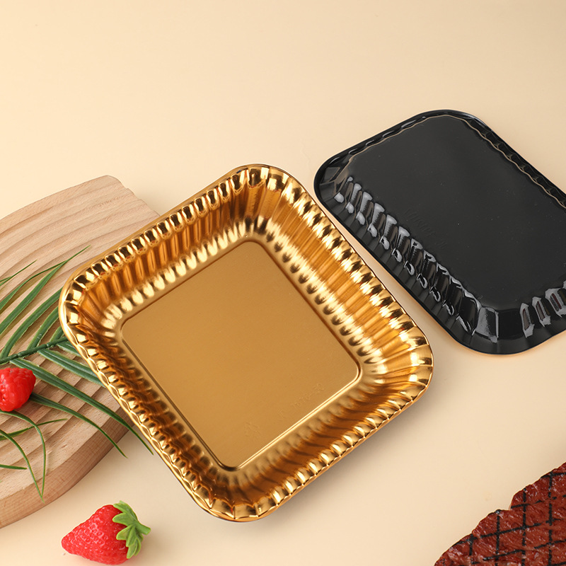 一次性金色平底生鲜水果托盘方形果切打包无盖塑料PET加厚包装盒
