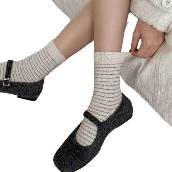 白灰秋冬羊毛袜子女加厚保暖ins风中筒袜波点基础条纹堆堆袜冬季