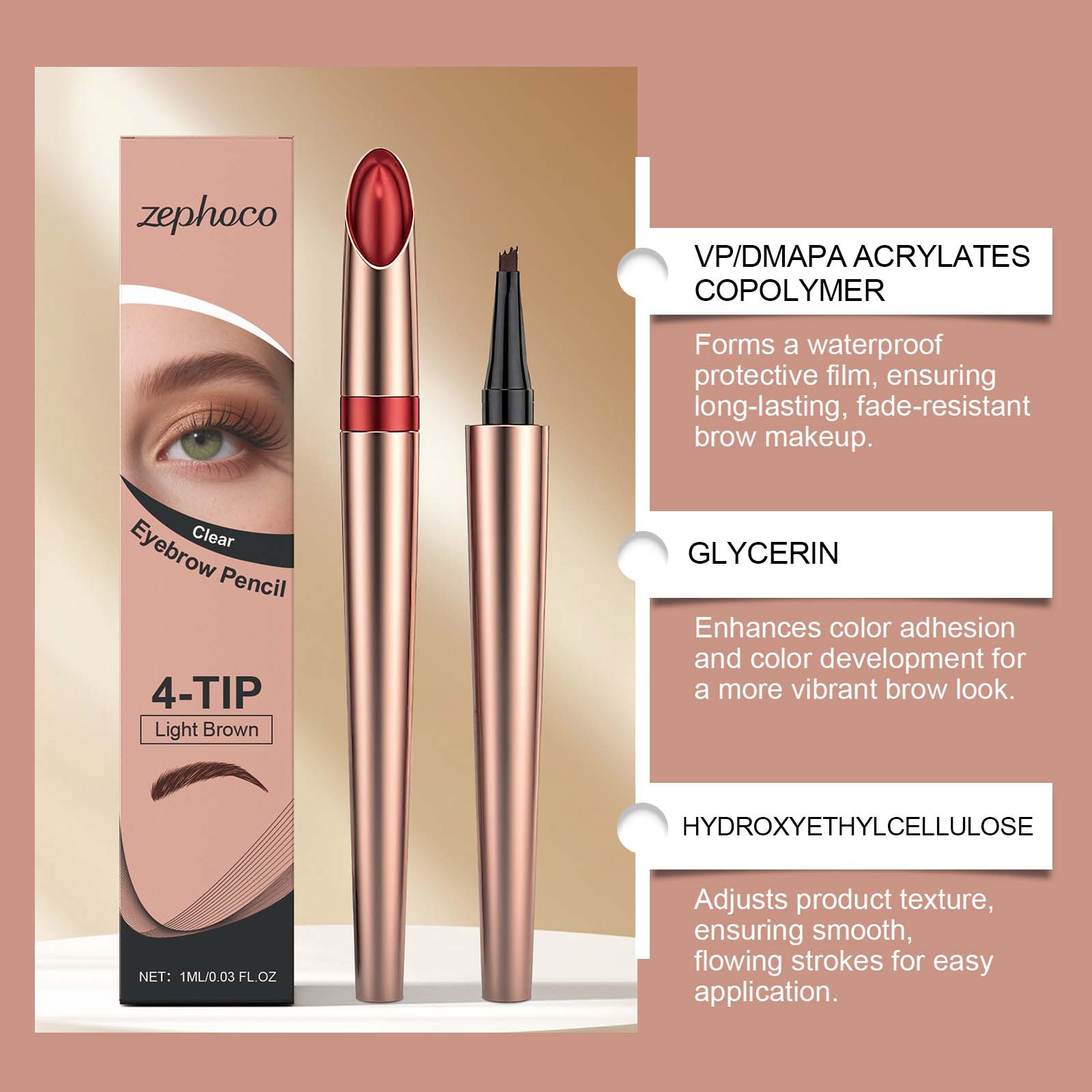 zephoco 浅棕色四叉眉笔 自然妆容修饰眉形根根分明填充不易晕染