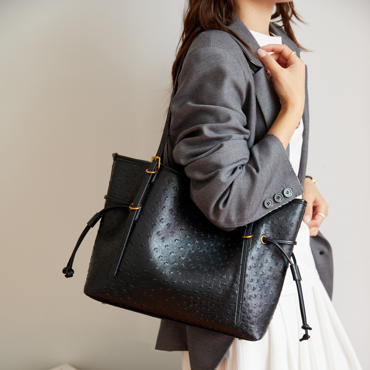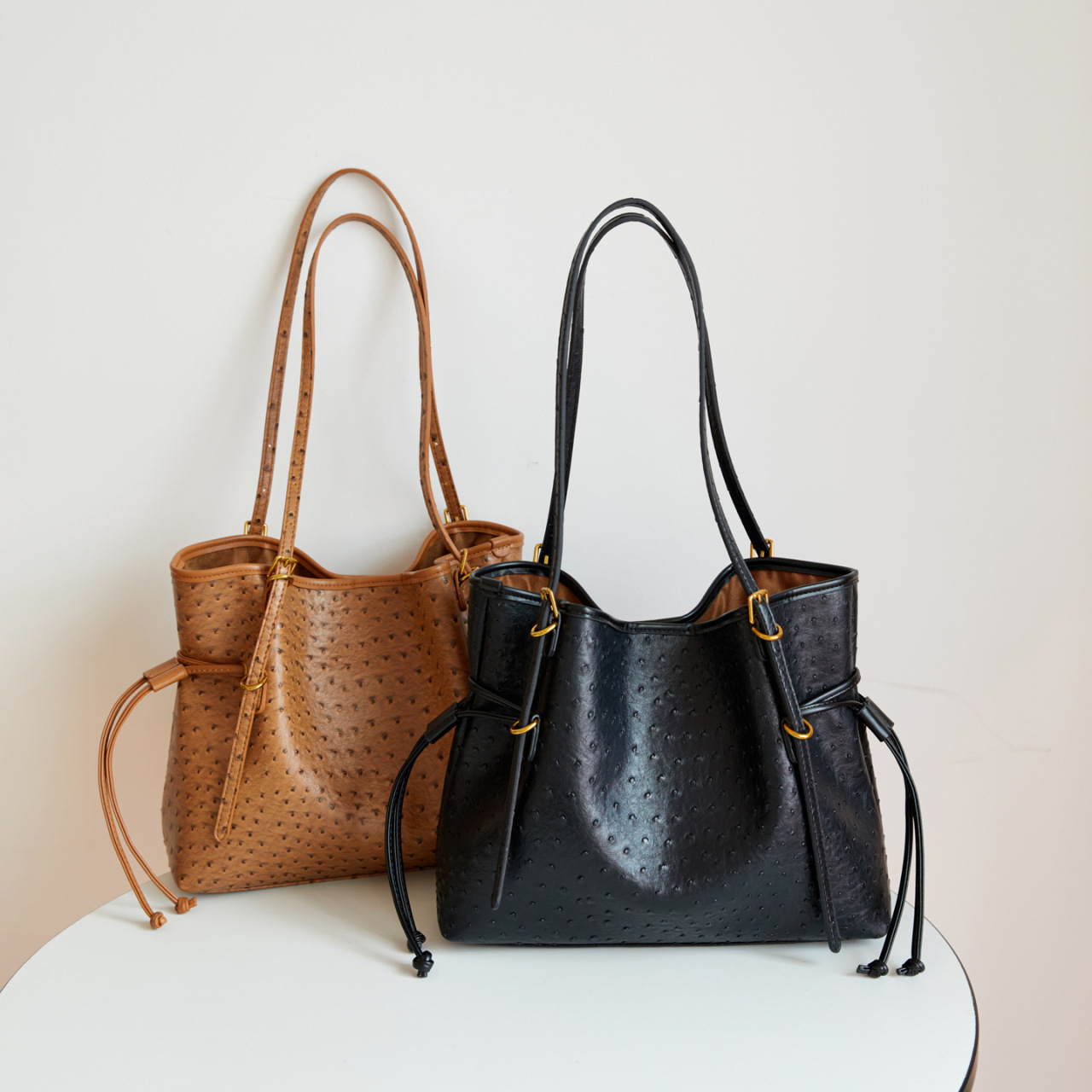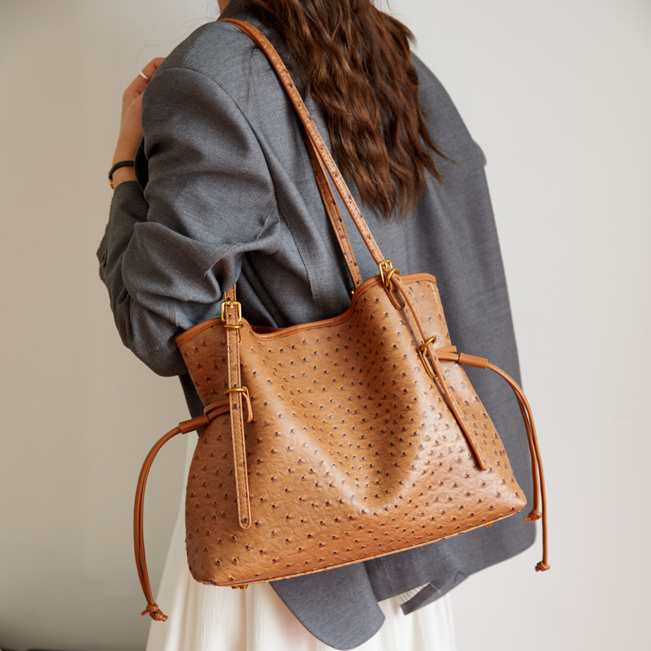2025秋冬新款鸵鸟皮纹质感托特包大容量小众设计单肩包百搭腋下包