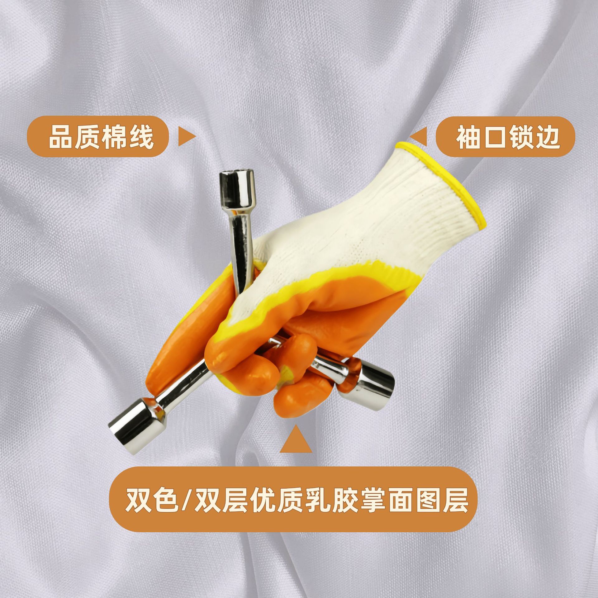 十针双色双层乳胶浸胶掌面涂层防护手套 防滑耐磨 农业建筑工地用