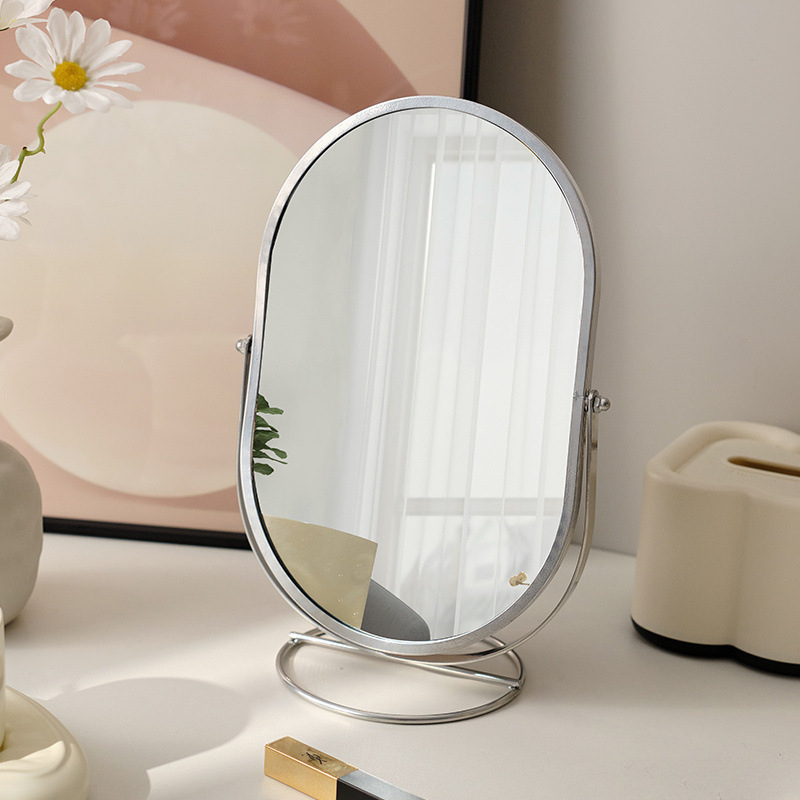 化妆镜台式桌面卧室化妆镜可旋转度椭圆形镜子风宿舍梳妆镜其它无