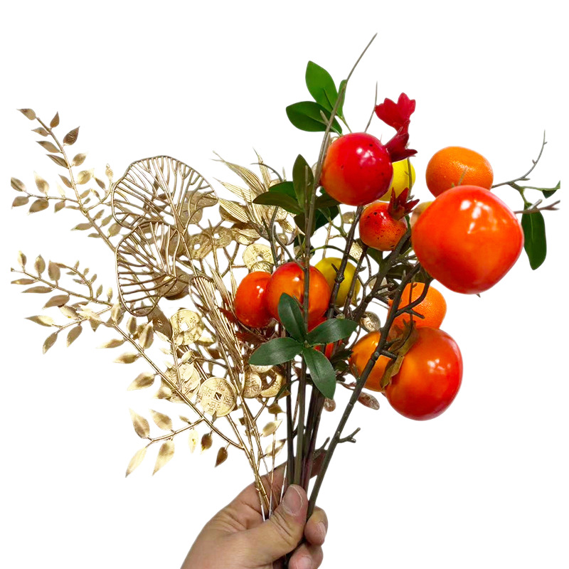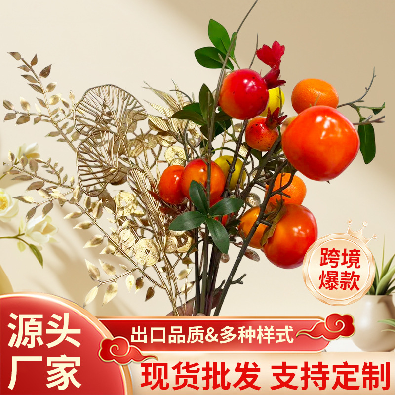 婚礼金色系仿真花新年福桶插花摆件尤加利发财果婚庆家居装饰花材