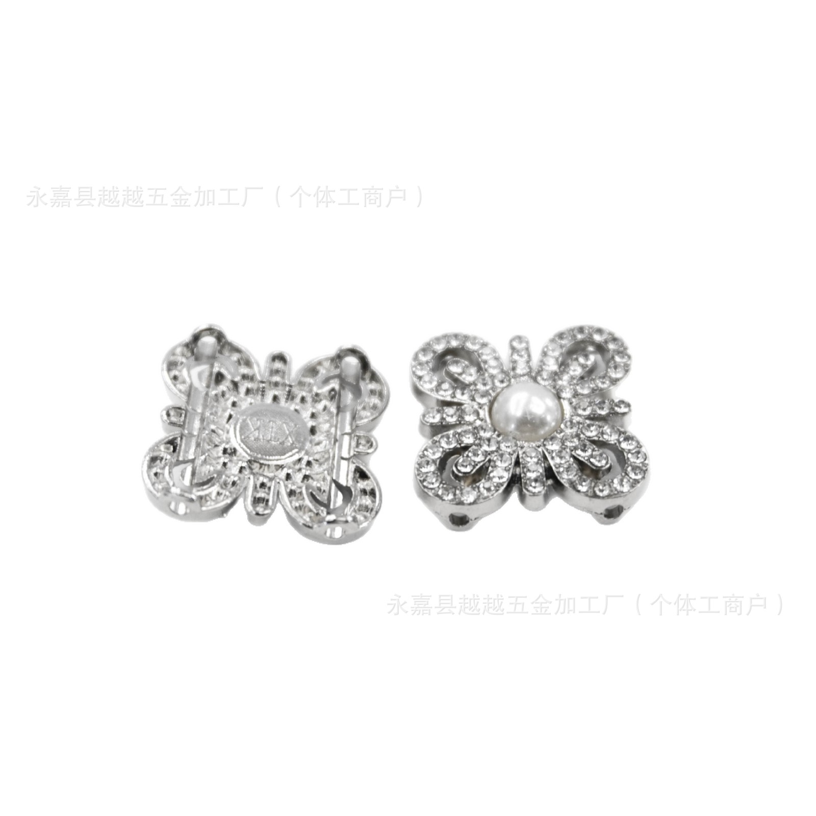越越五金厂家直销珍珠花盘锌合金配件钻扣饰品水钻几何服饰扣