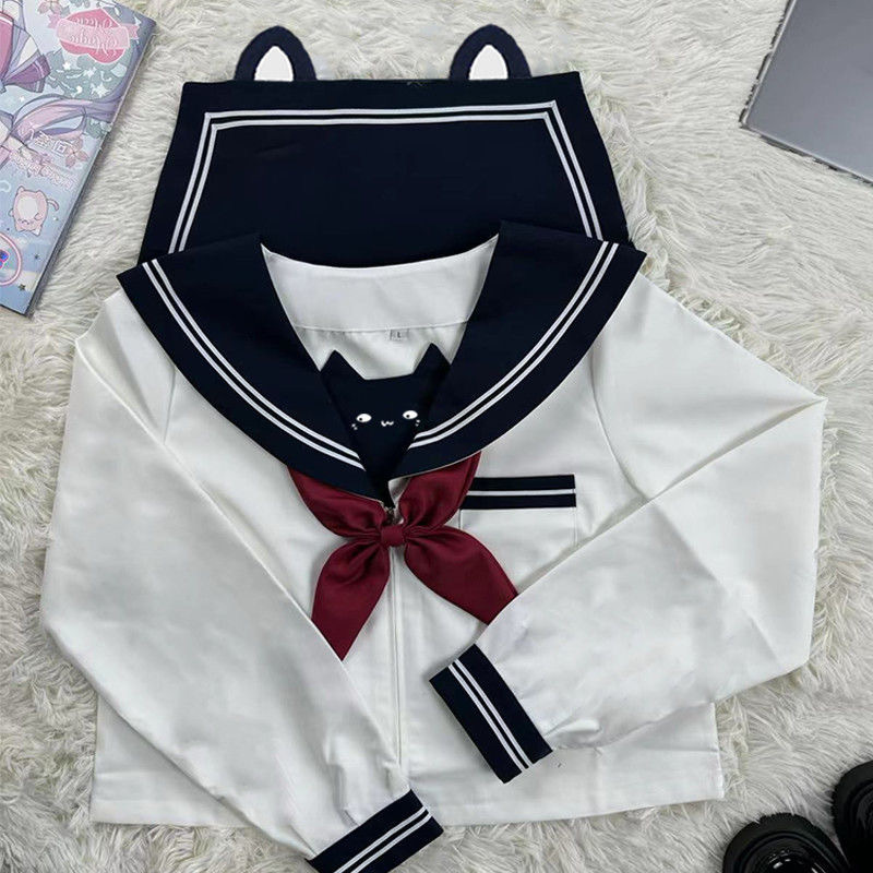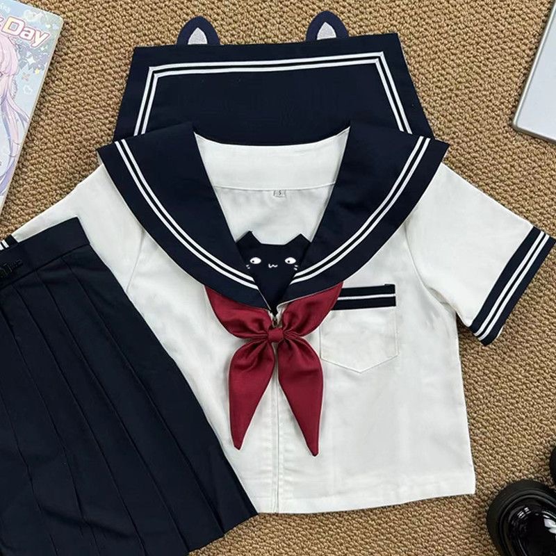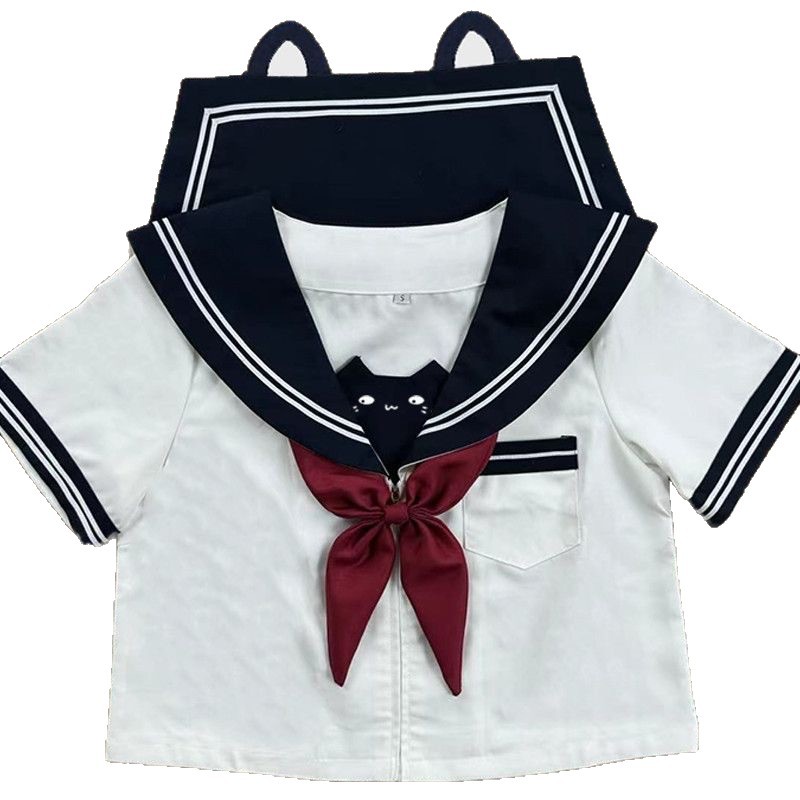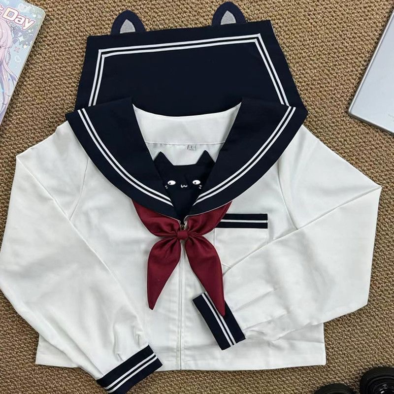 风吹麦香jk原创山竹小喵黑白水手服套装萌刺绣学院风JK制服COS