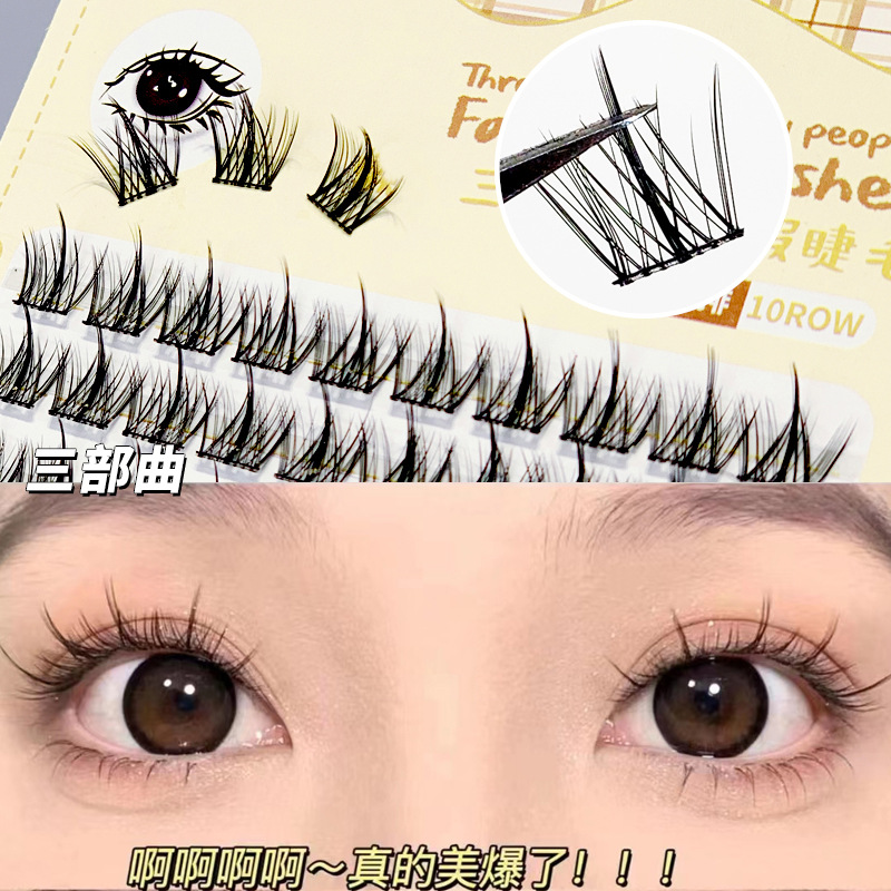 xixi三部曲麦穗单束假睫毛自然超细梗分段式嫁接睫毛 初学者