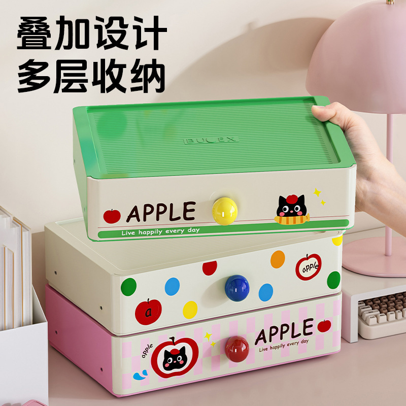 塑料桌面收纳盒抽屉式防尘多层展示盒宿舍文具化妆品收纳置物架