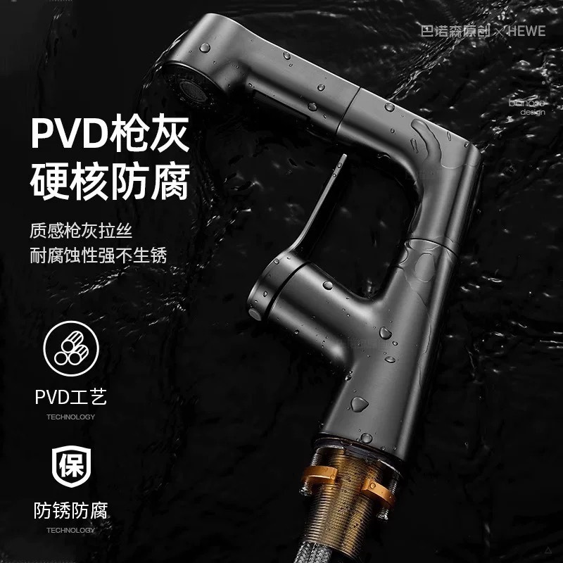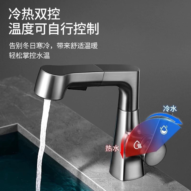 九牧铜升降抽拉冷热旋转枪灰水龙头浴室柜面盆洗脸台盆漱口黑色