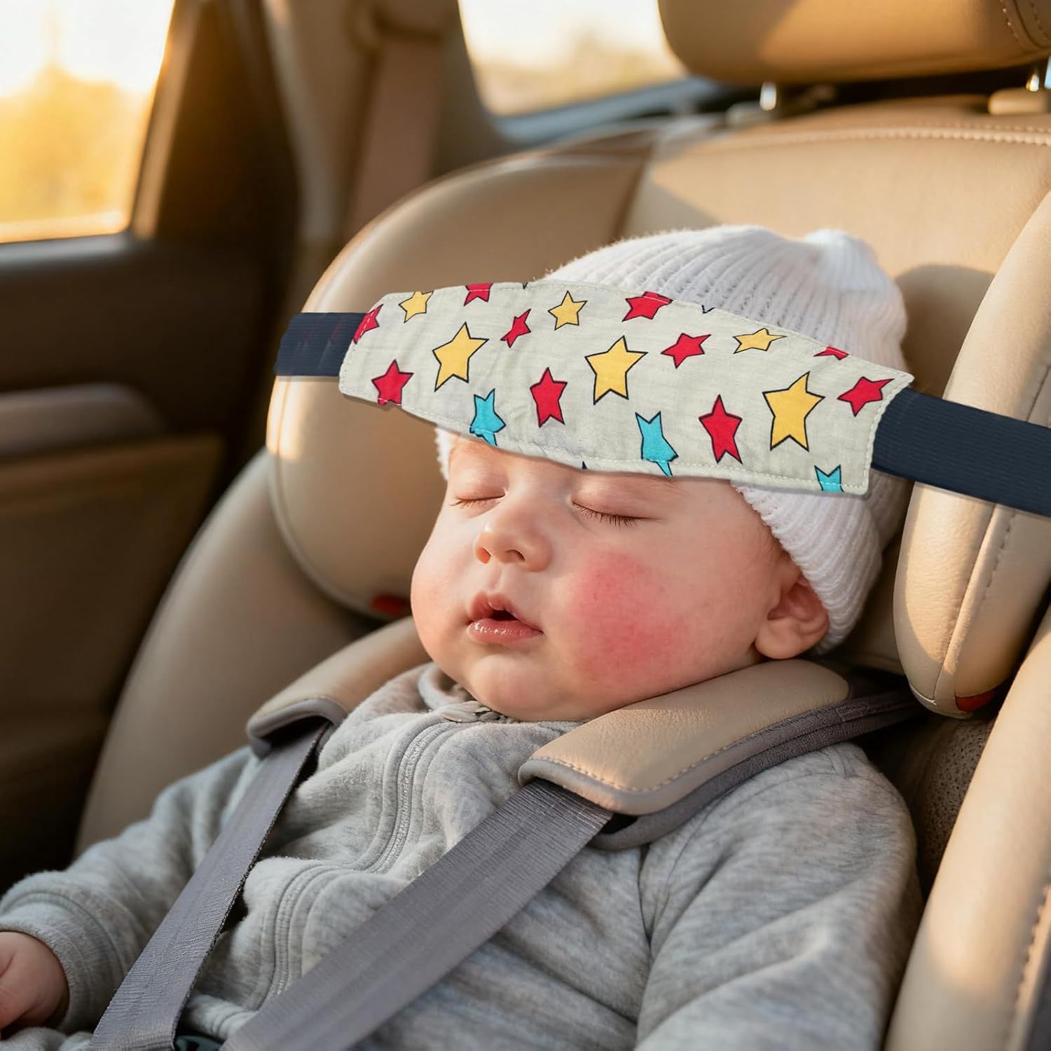 婴儿头部保护带儿童汽车座椅纯棉头部保护套睡眠辅助带安全带防护