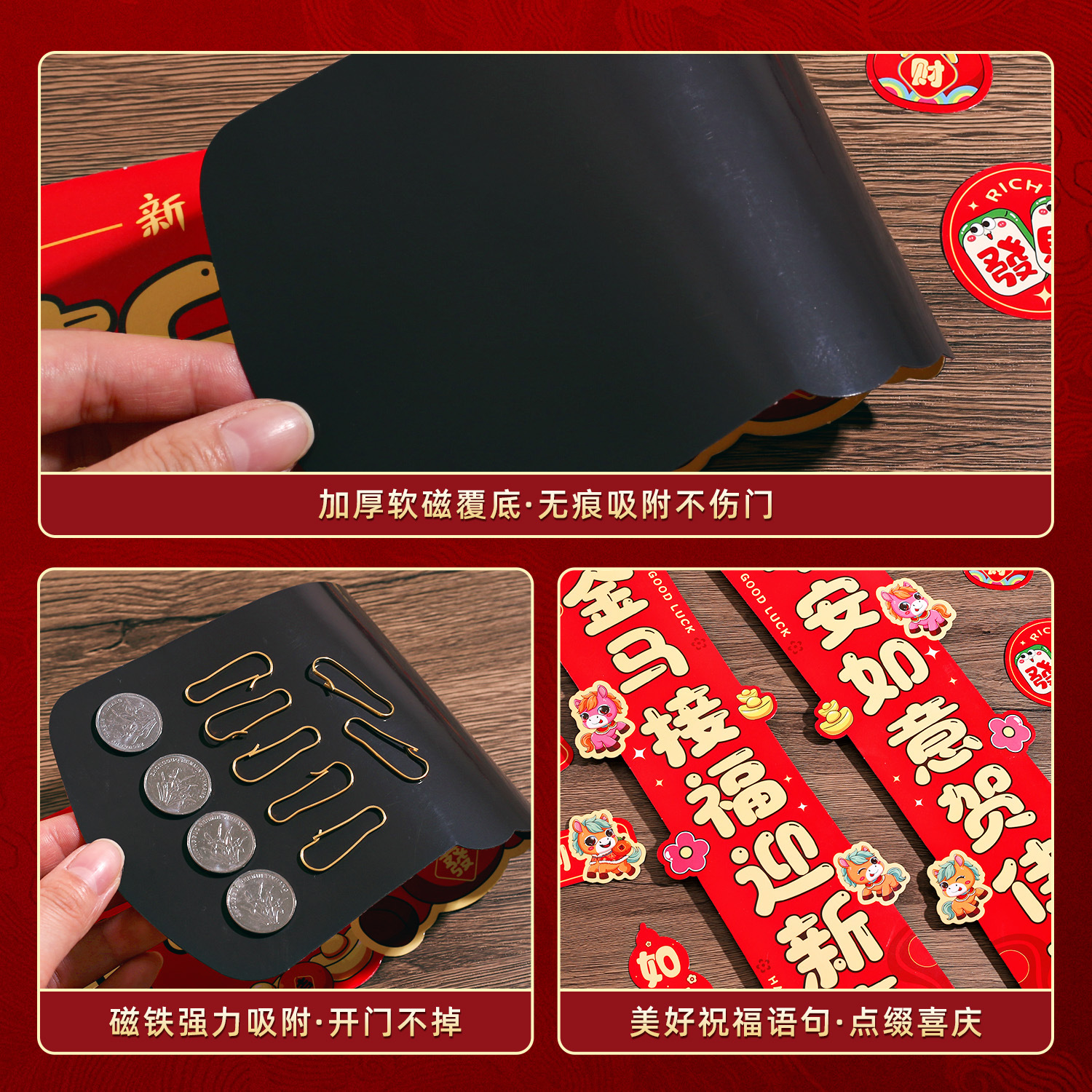 颜色 | 全背磁吸【新年快乐B款]送对贴+冰箱贴 | | 尺寸 | [磁吸+布基胶]平整不伤门 |