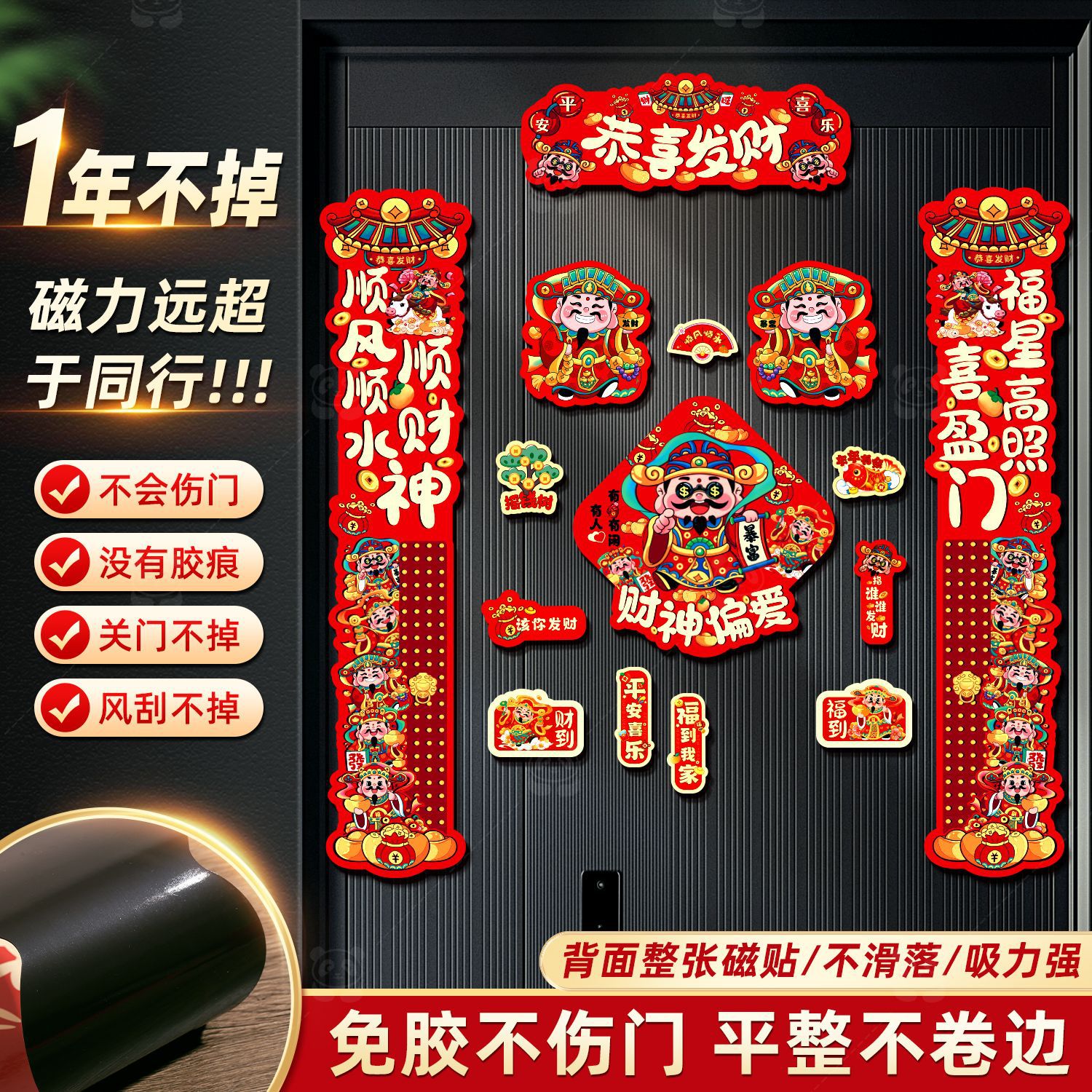 马年磁吸对联入户大门福字贴春节过年布置2026新款春联新年装饰品