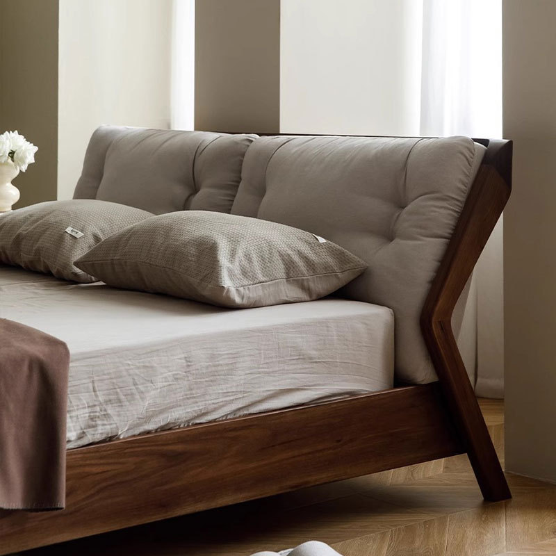 北欧全实木双人床1.8米黑胡桃木现代简约白蜡木布艺软靠卧室婚床