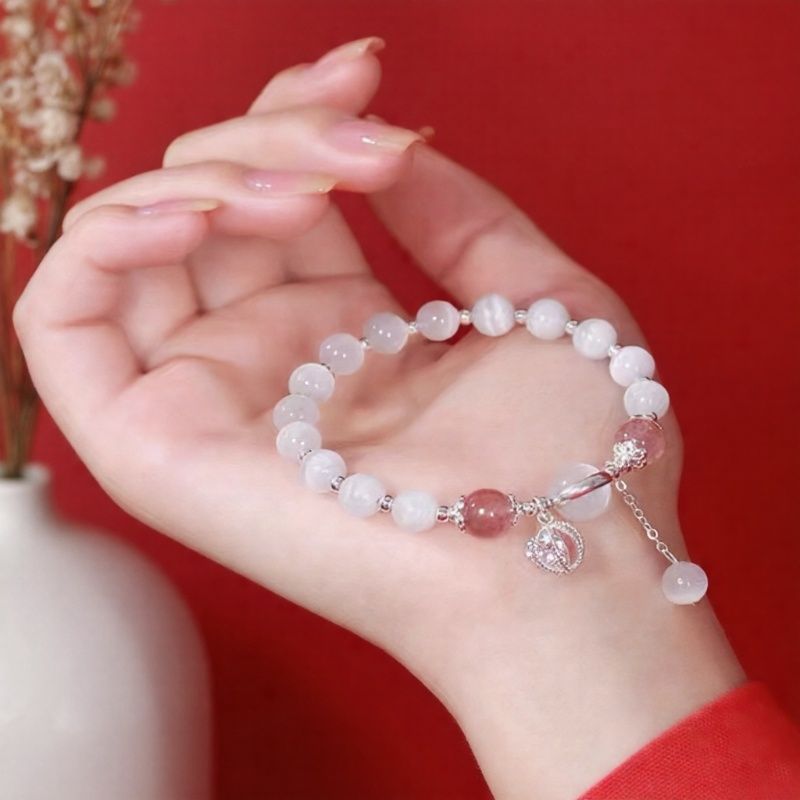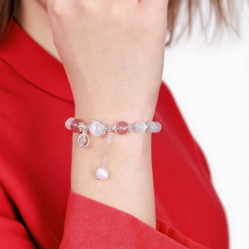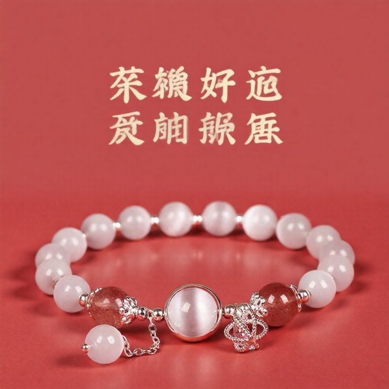 925银 普陀山爆款猫眼石手串天然草莓晶招财转运手饰新款串珠手链