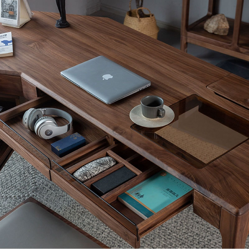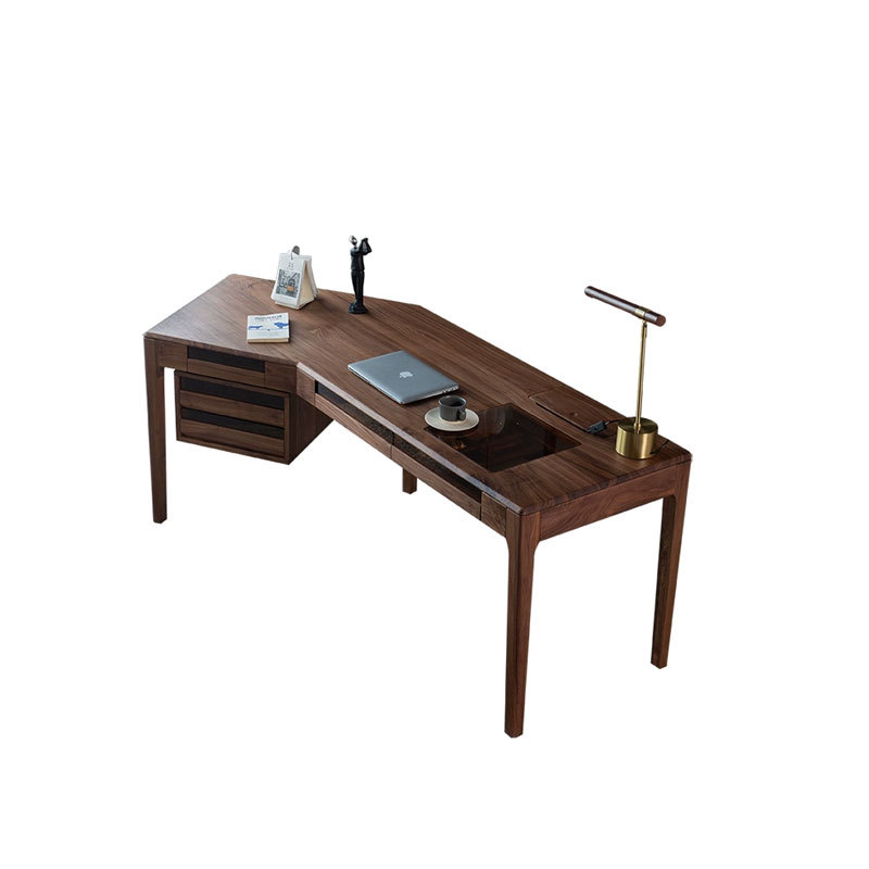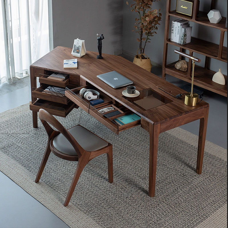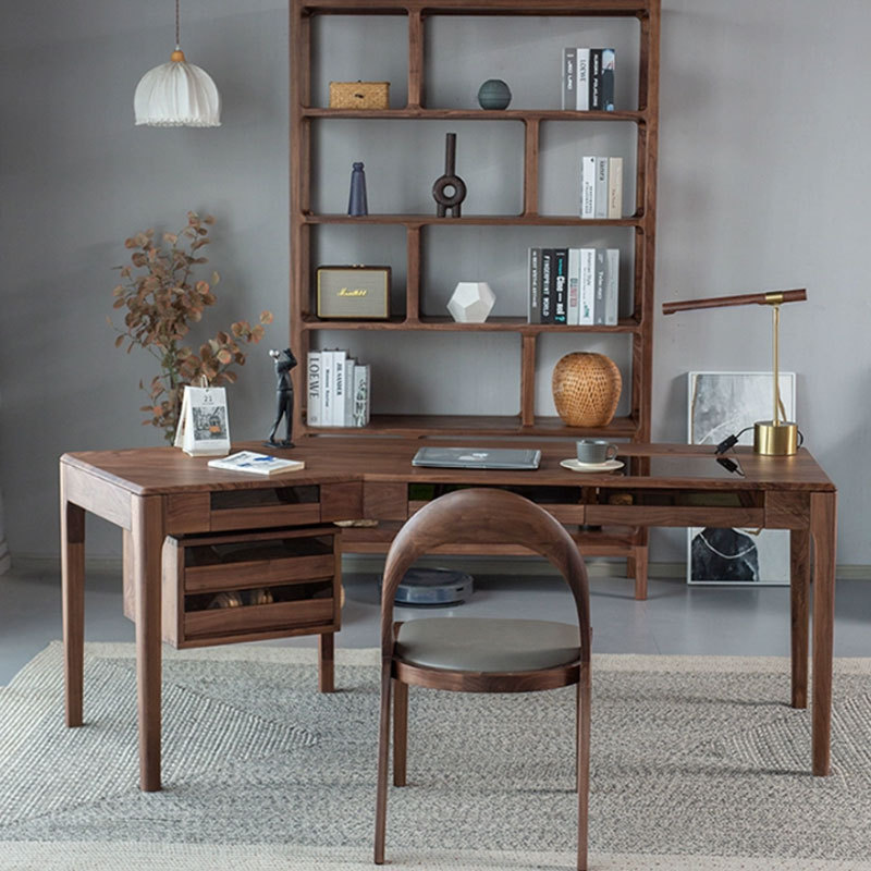 北美黑胡桃书桌轻奢实木办公桌现代简约转角办公台书房电脑抽屉桌