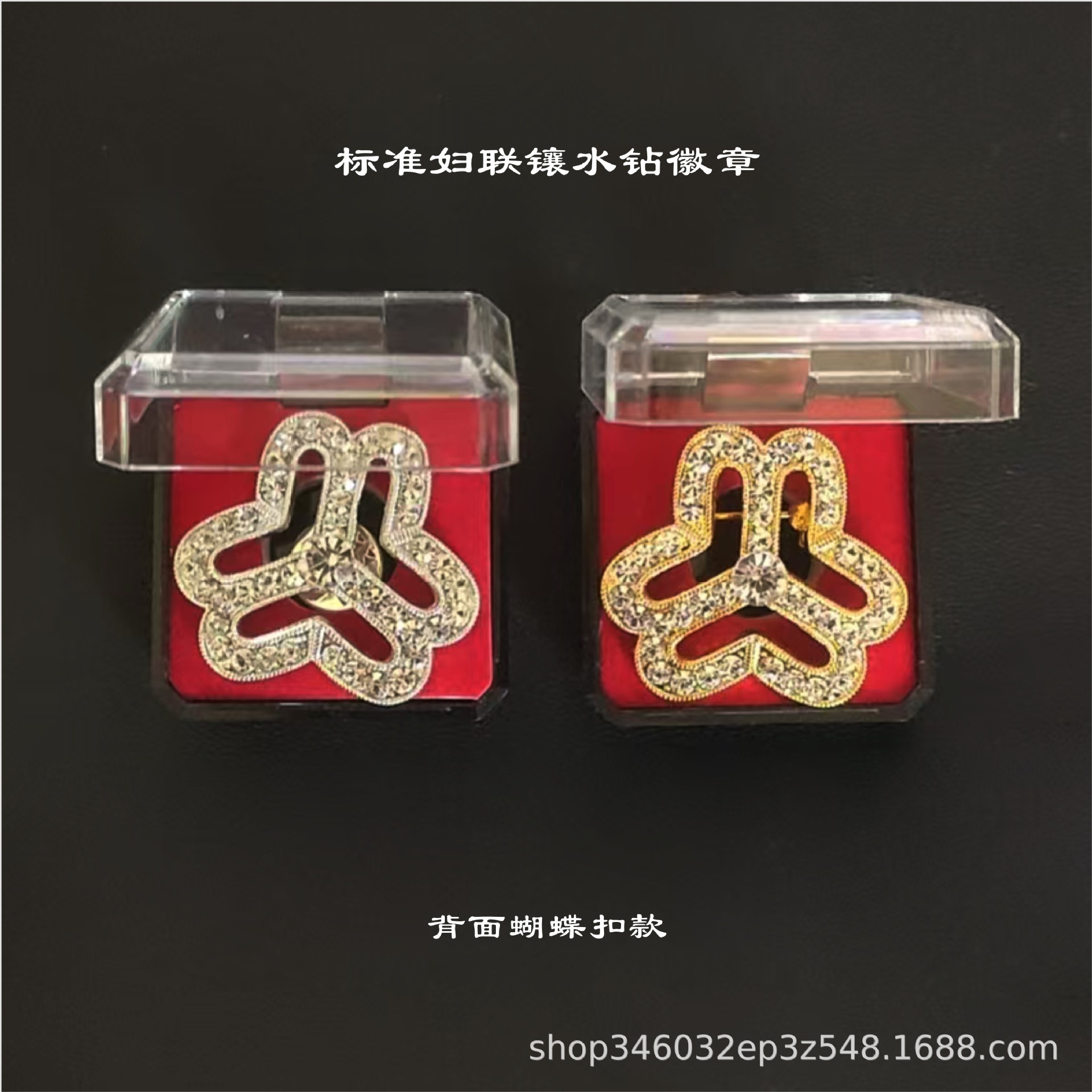 三八妇女节镶钻礼品妇联换届大会纪念品标准妇联徽章礼品盒子套装