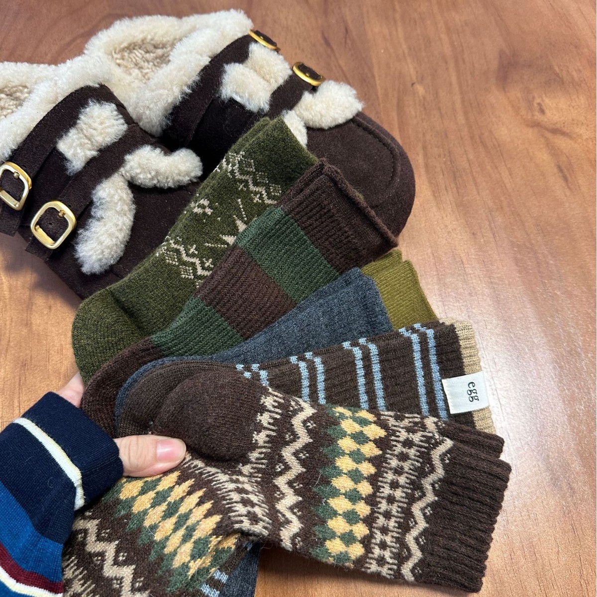 圣诞款雪花费尔岛复古风加厚保暖袜冬季加绒加厚保暖女袜中筒袜