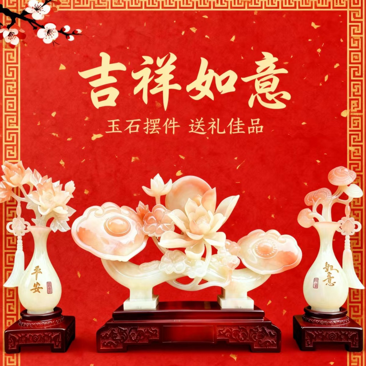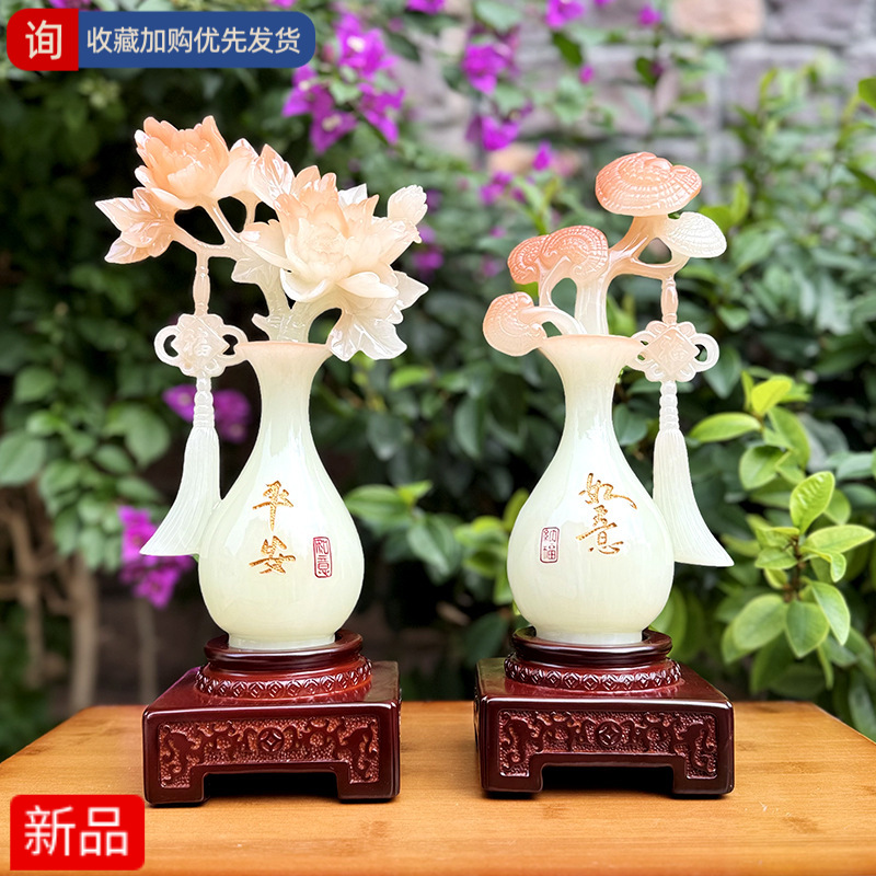 | 颜色 | 新款白玉色平安如意花瓶一对 | 颜色 | 单件白玉如意 |