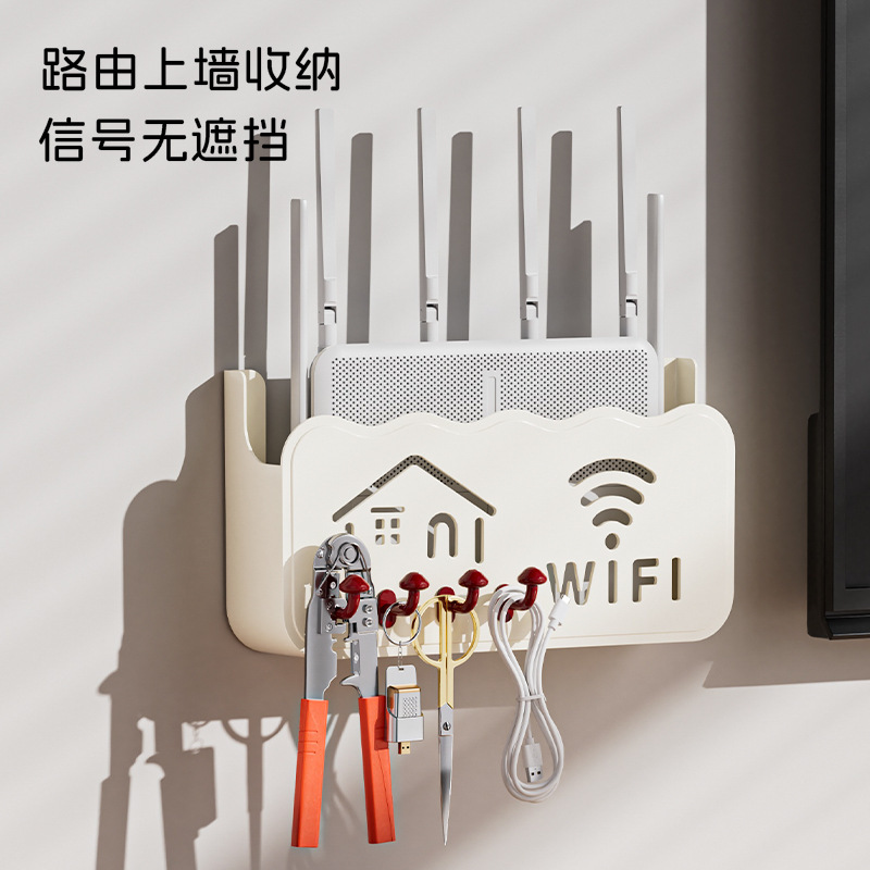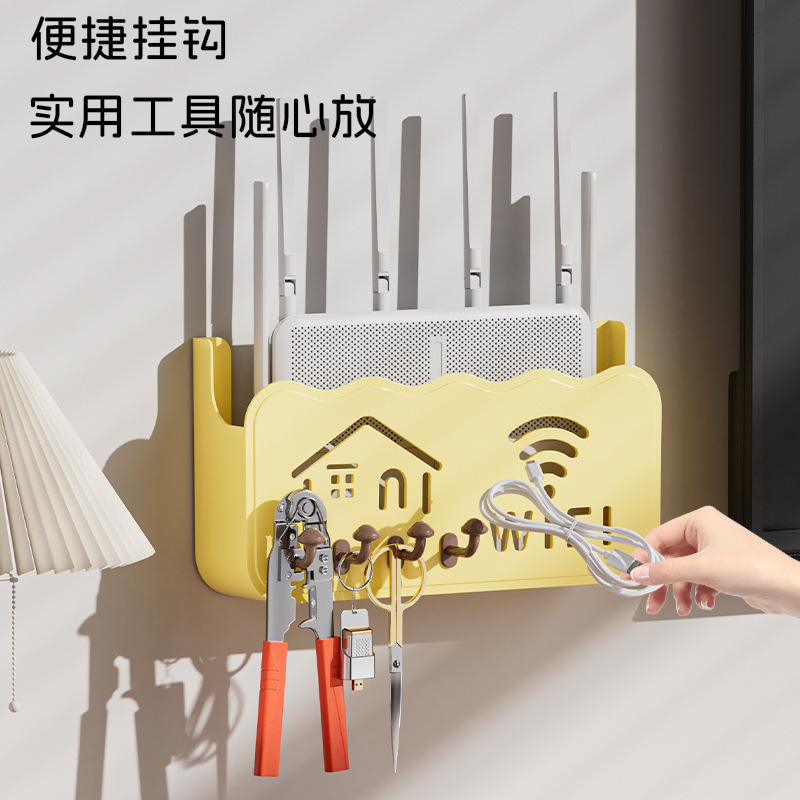 卡通小蘑菇路由器置物架电视机顶盒收纳架壁挂免打孔收纳盒子批发