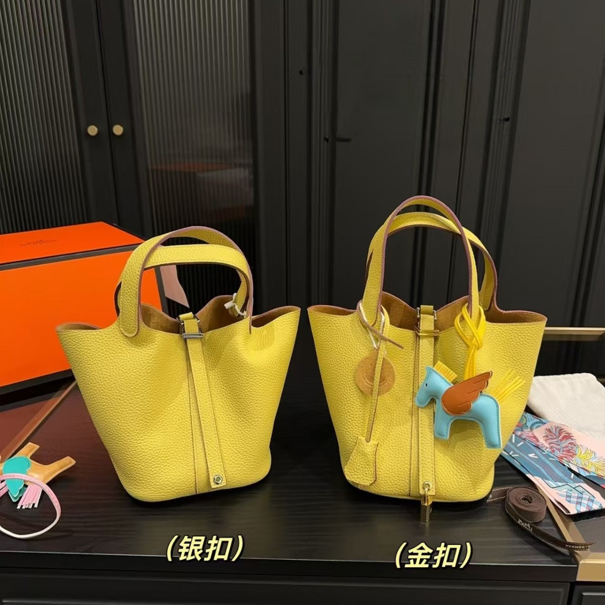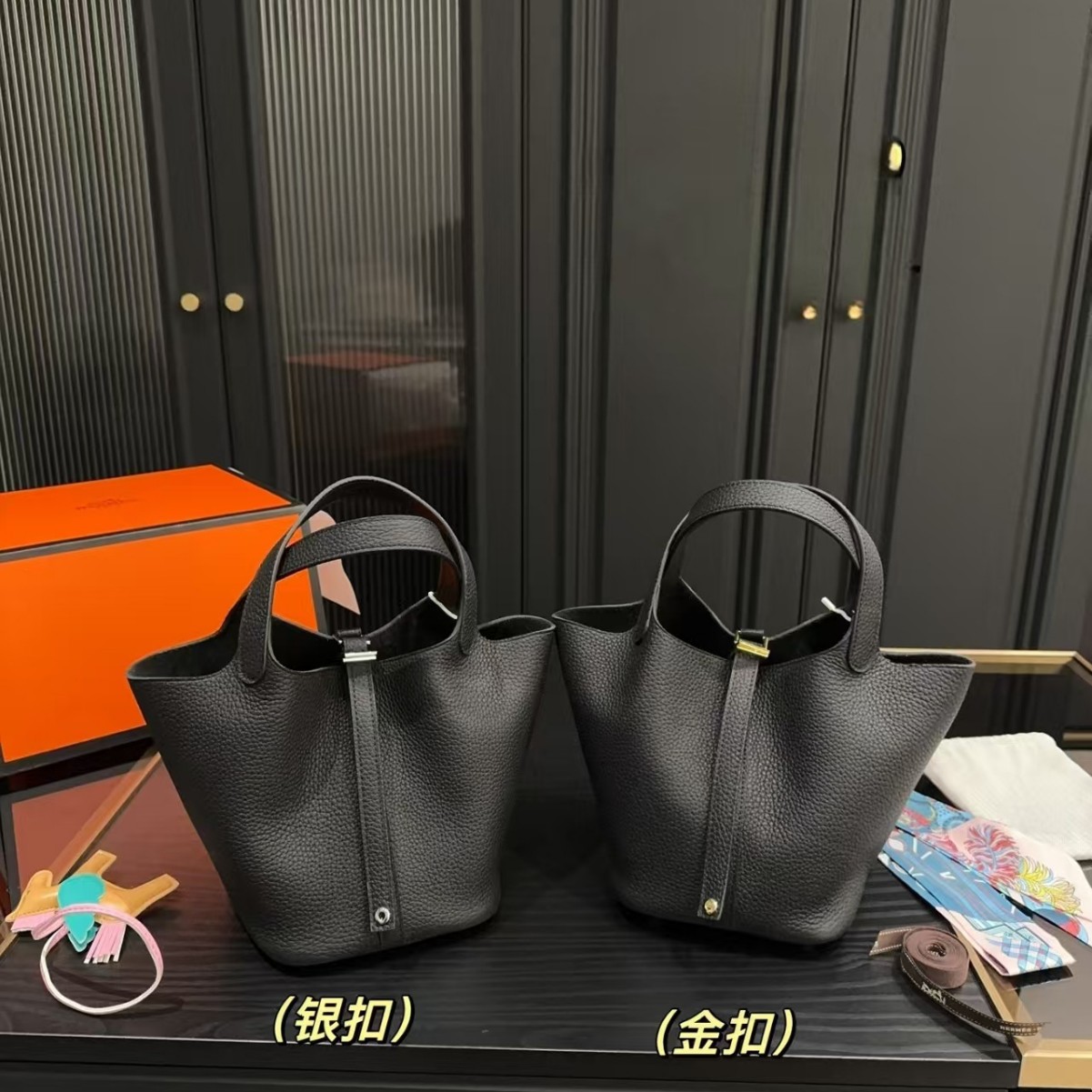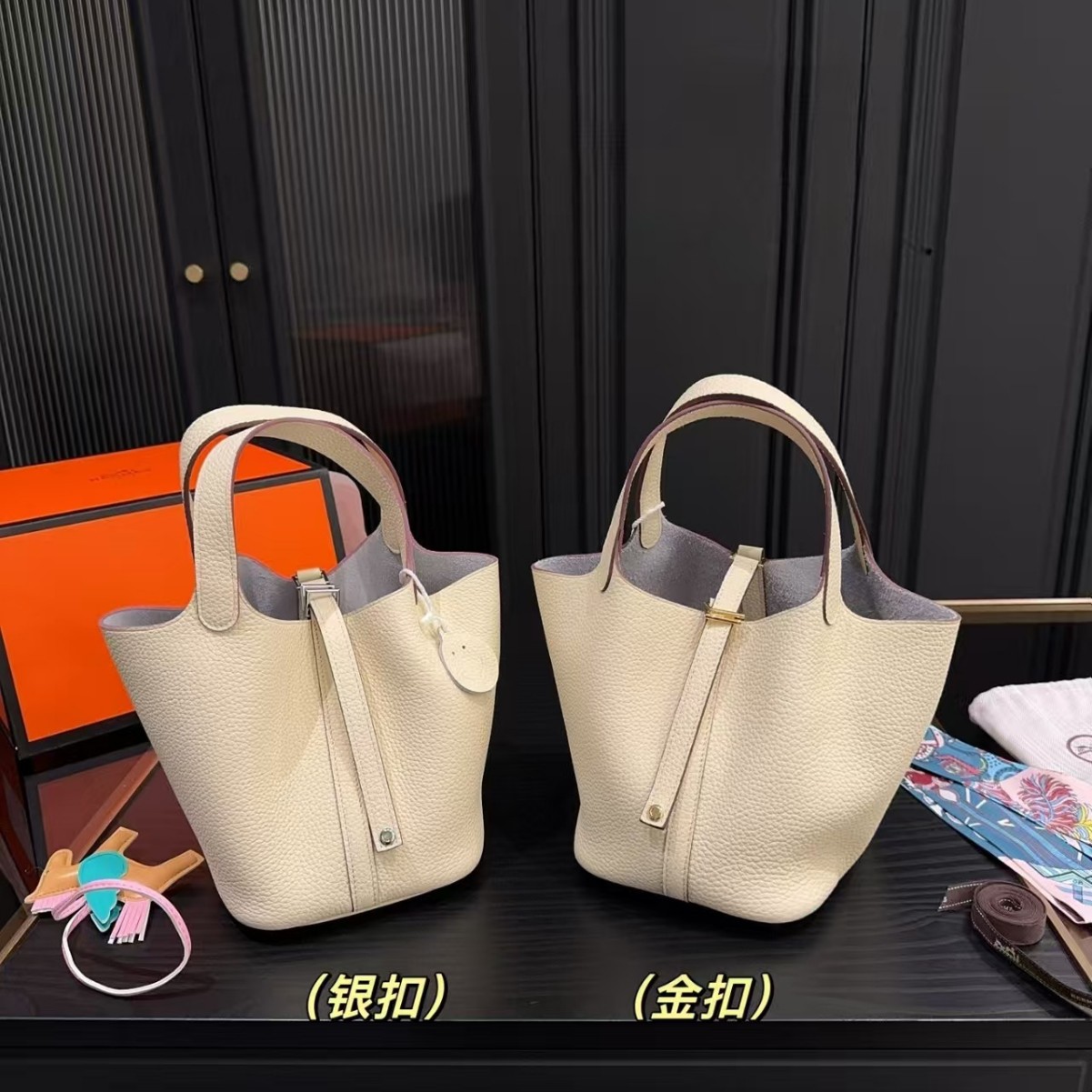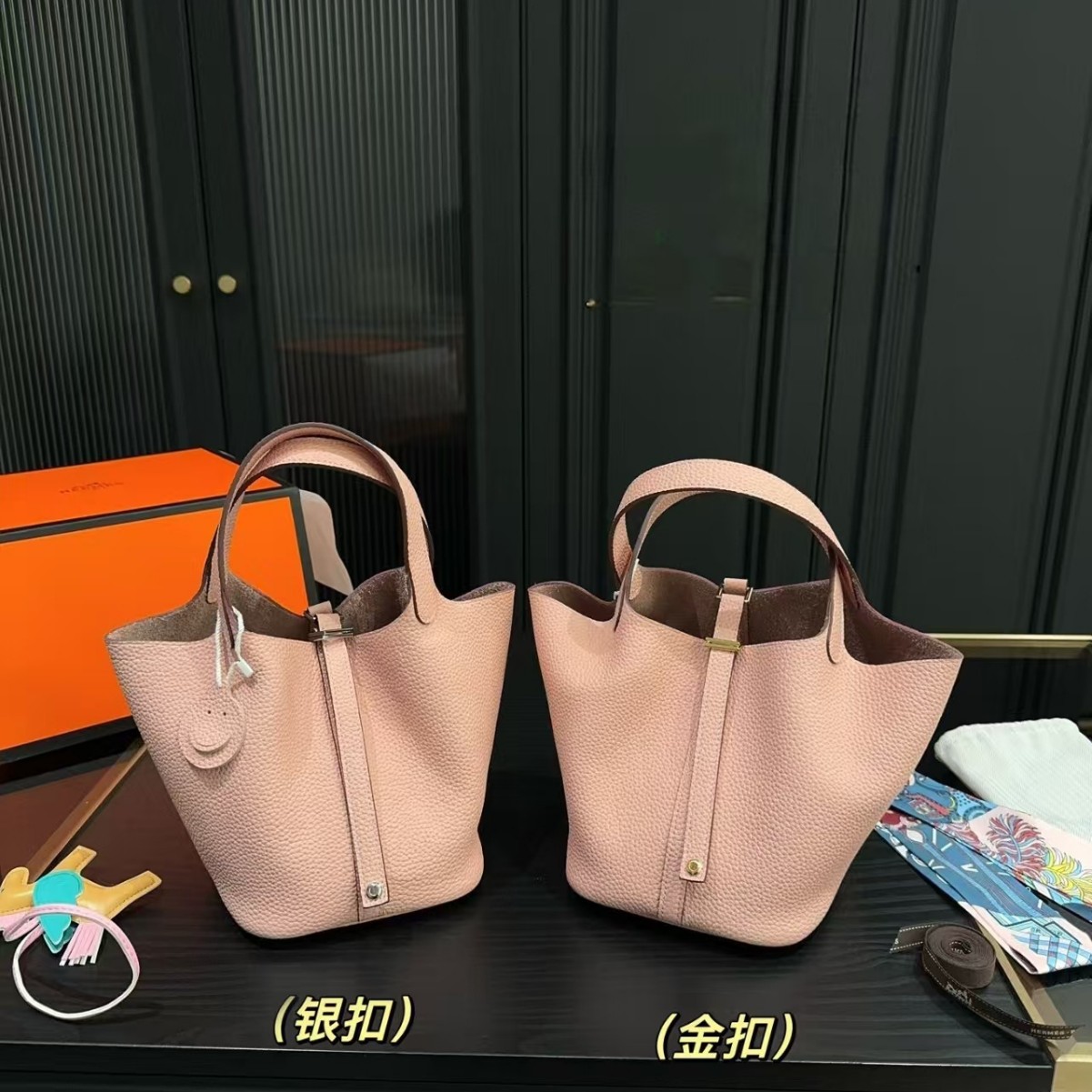 2025新款牛皮菜篮子包真皮水桶包荔枝纹百搭简约手提女包