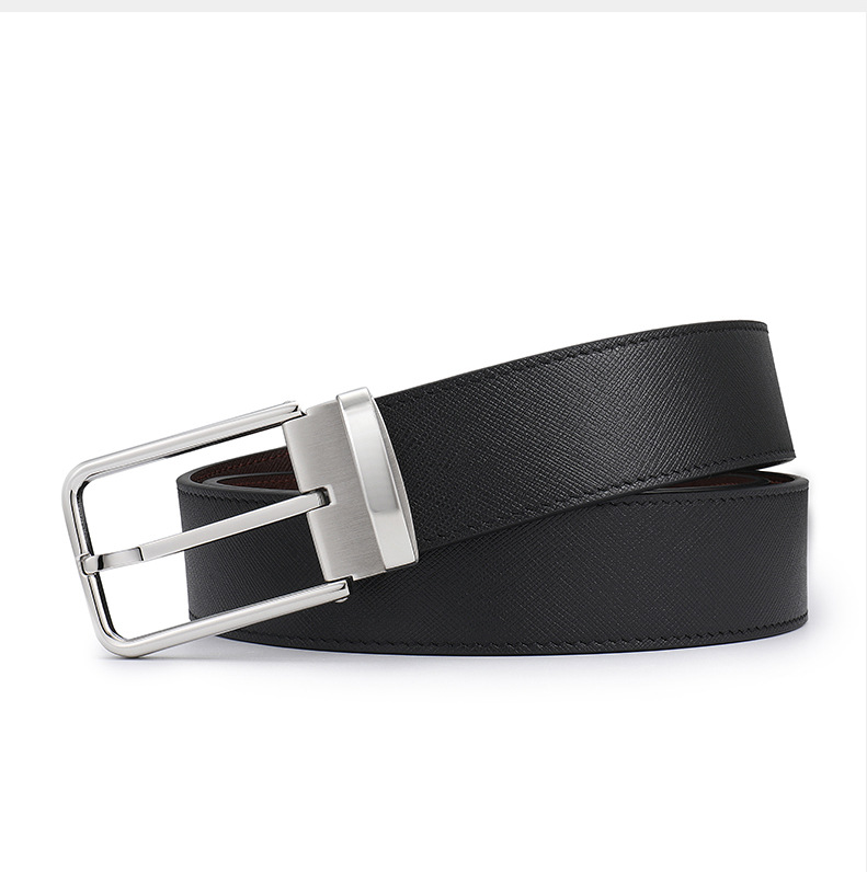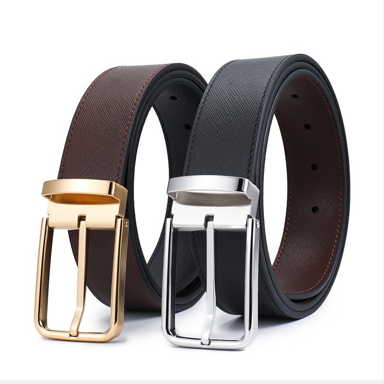 广州欧美潮牌男款头层牛皮针扣腰带 3.5cm 欧美复古休闲真皮皮带