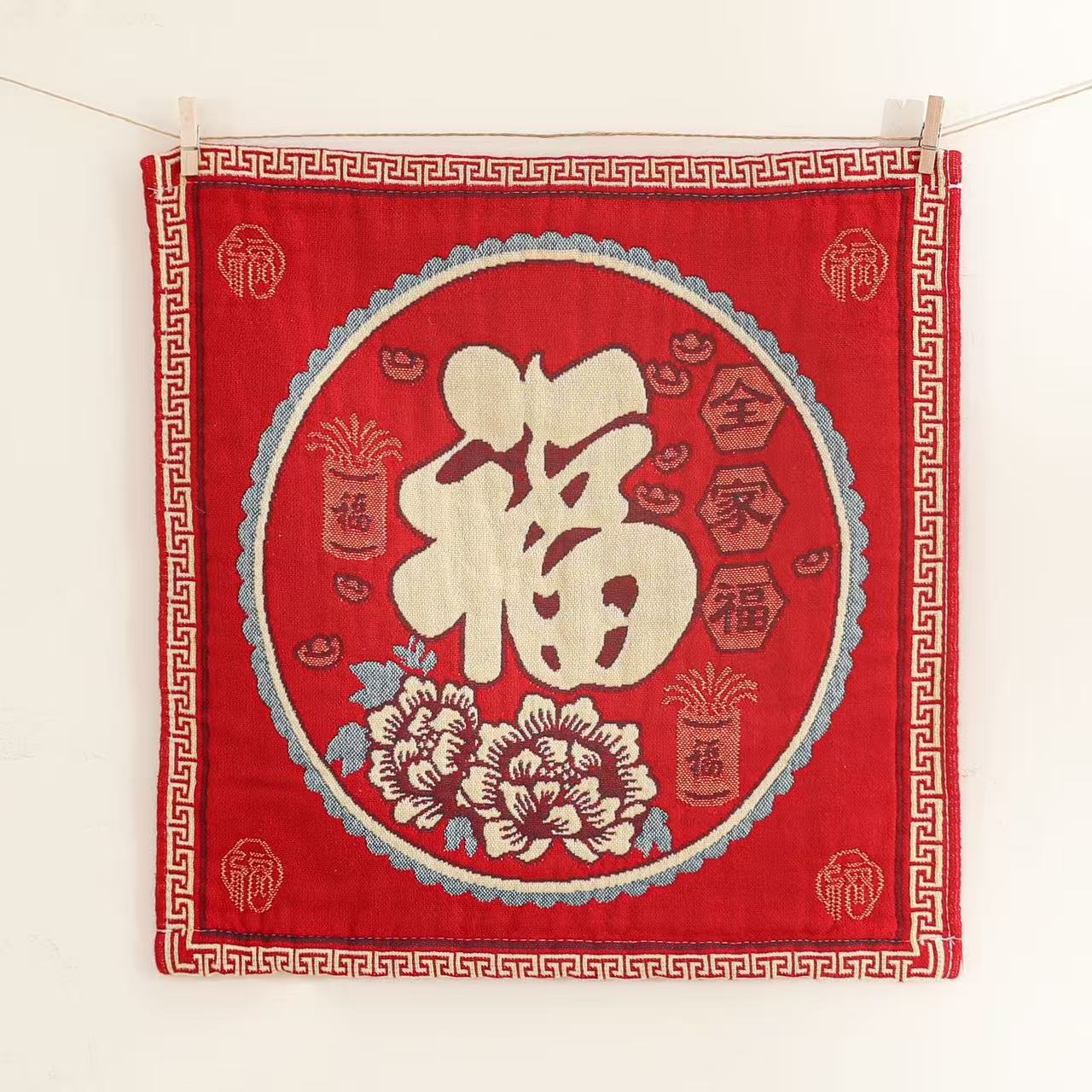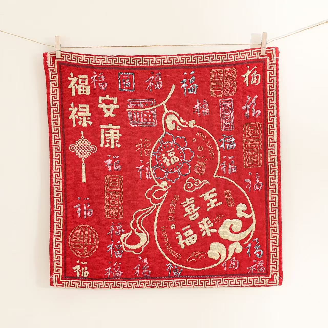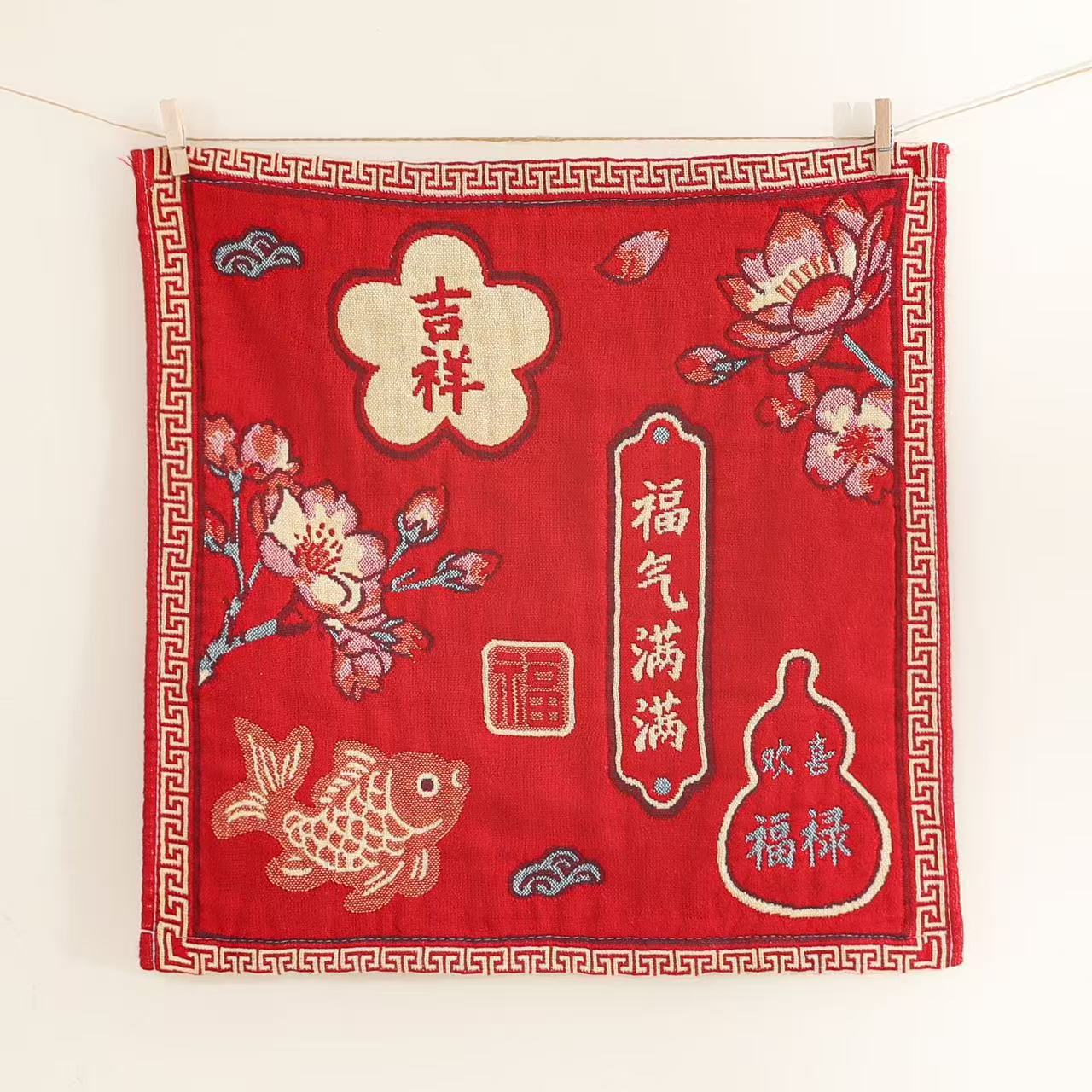 喜字全棉结婚大红方巾大红色福字亲肤擦脸巾国风不易掉色方形毛巾
