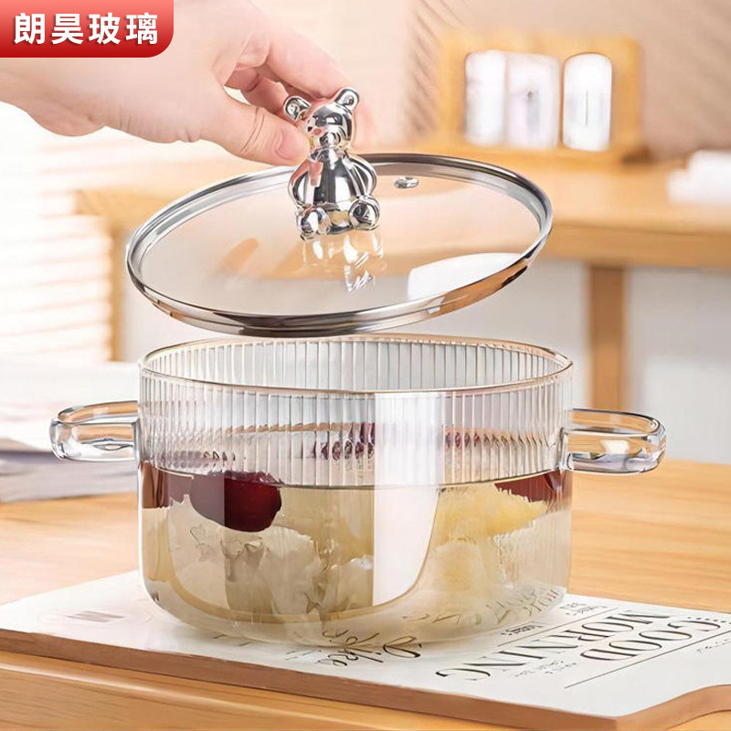 竖纹玻璃汤锅可加热电陶炉炖煮汤锅家用厨房玻璃汤煲炖锅奶锅红酒