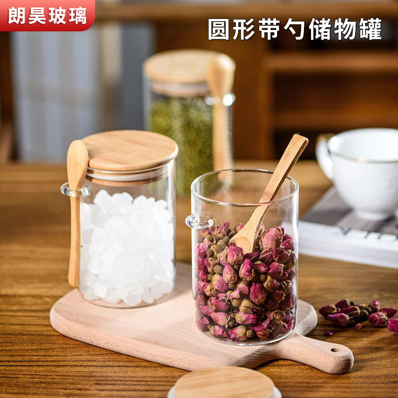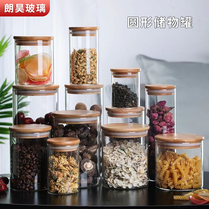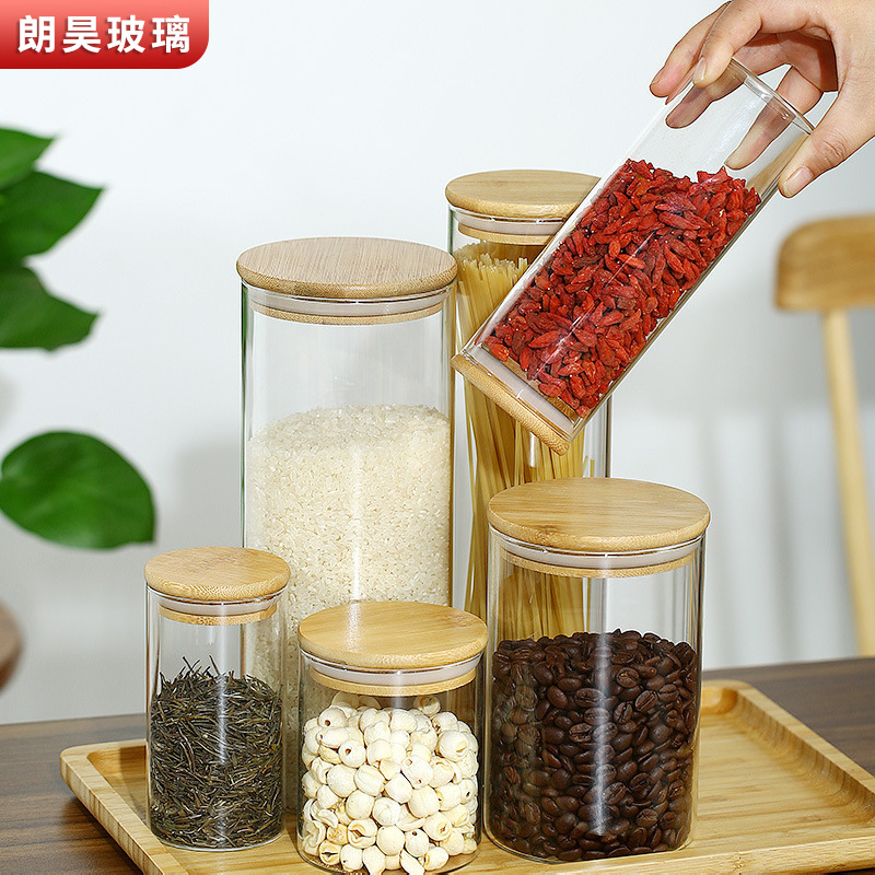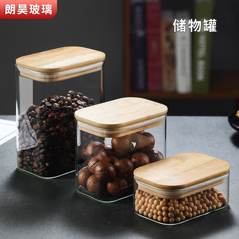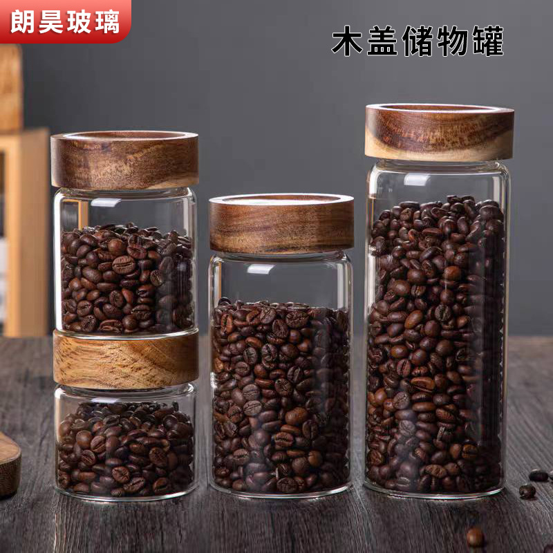 木盖储物罐家用透明玻璃密封罐子高硼硅收纳罐防潮咖啡粉罐茶叶罐