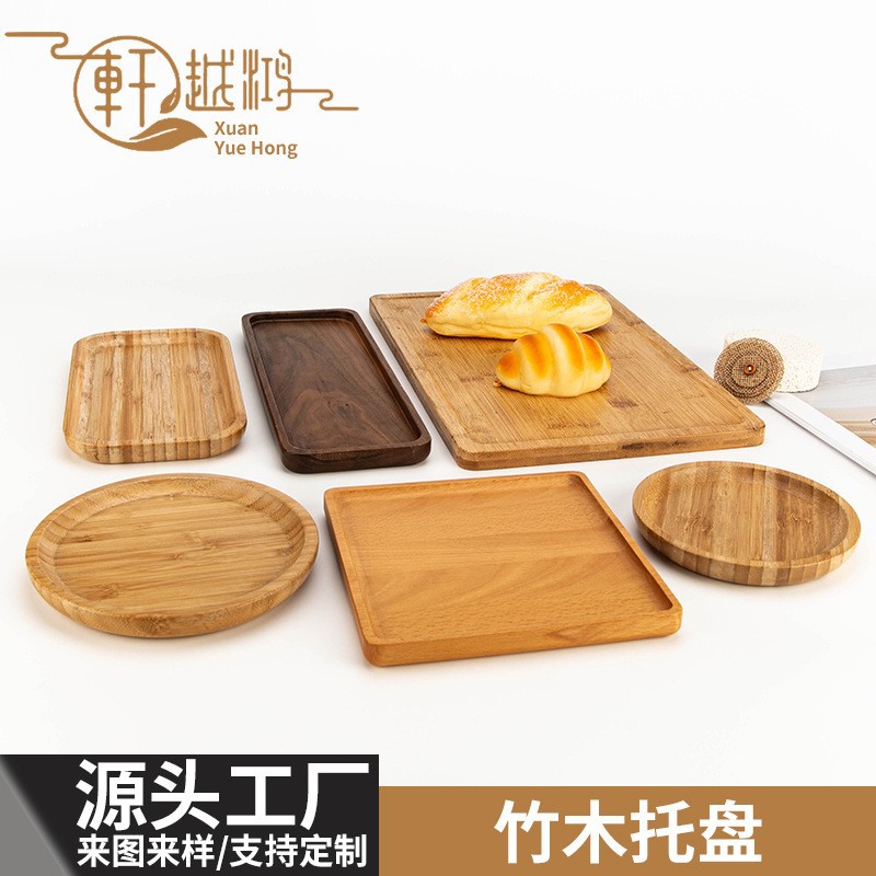 黑胡桃木托盘长方形家用放水杯实木木质茶盘圆形现代简约木盘木制