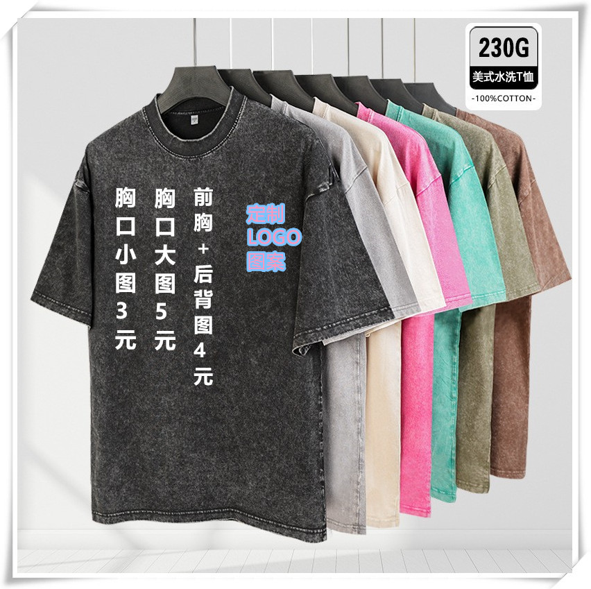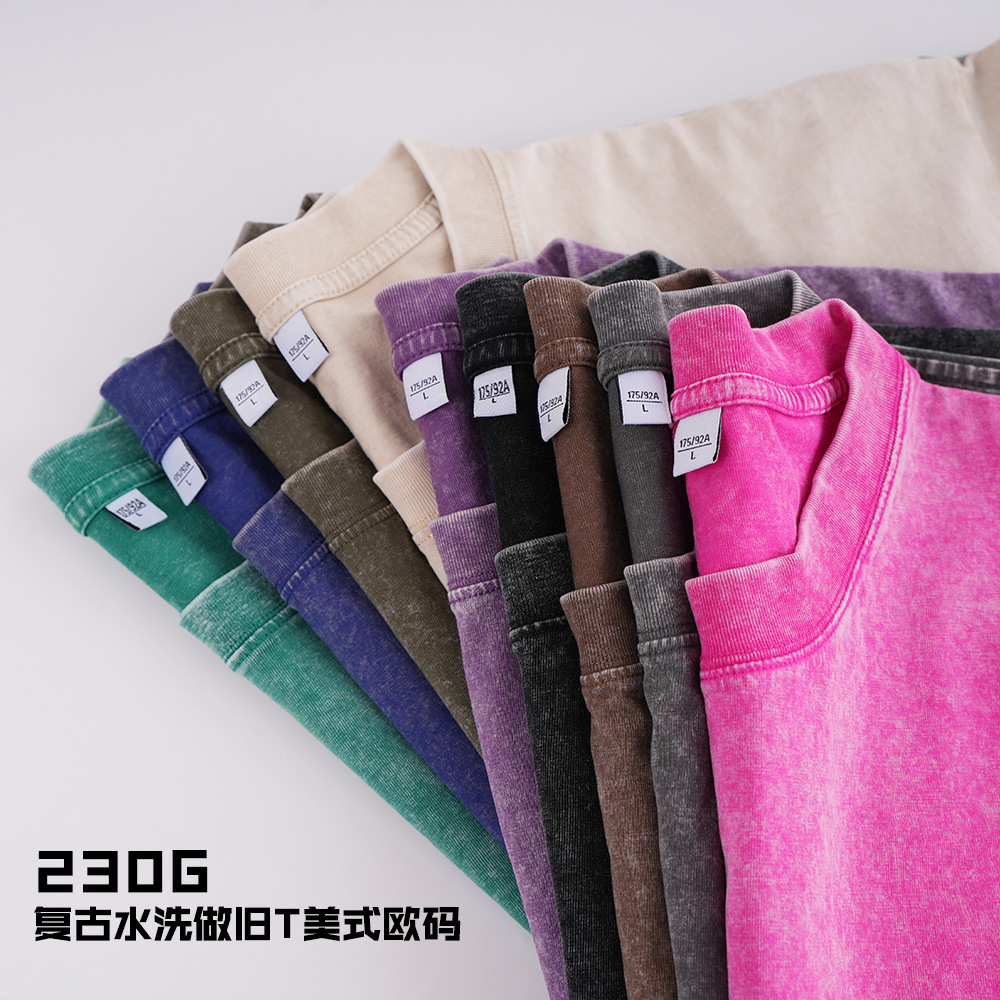 230g复古炒雪花水洗T恤欧美跨境t宽松打底圆领重磅t恤男现货