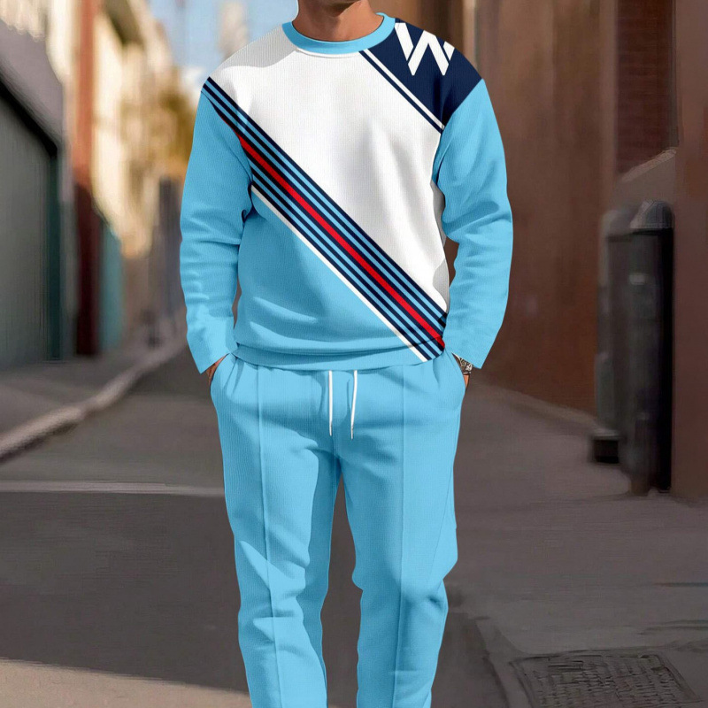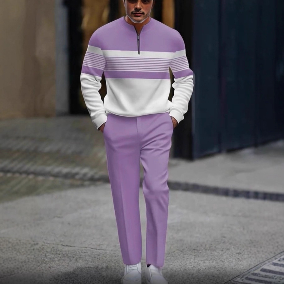亚马逊热卖跨境新款秋季半拉链长袖长裤3D印花空气层面料男装套装
