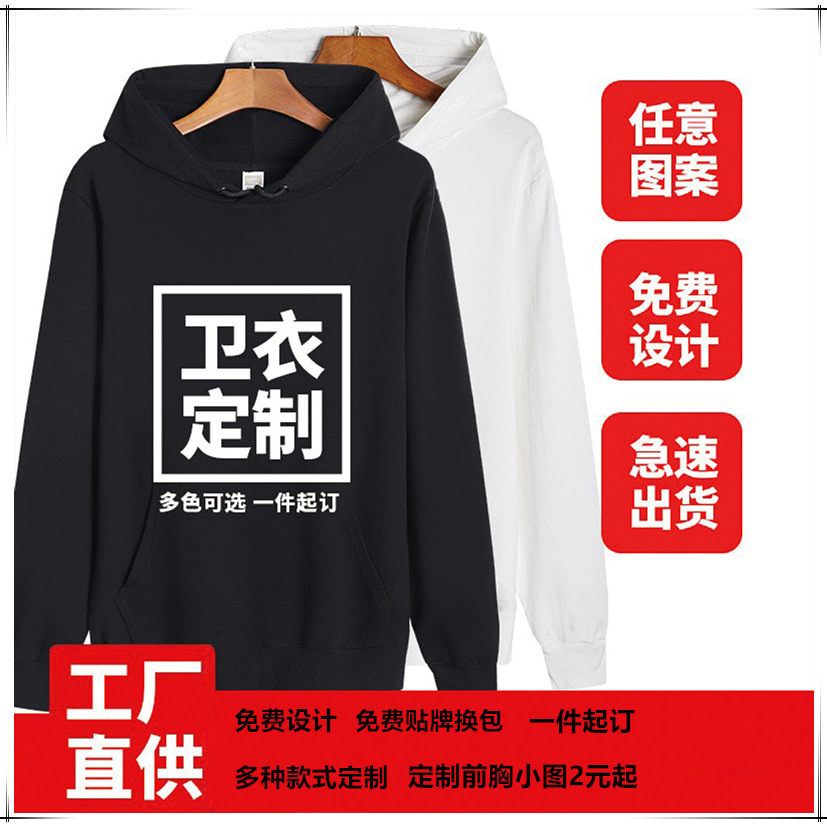 加工华棉连帽卫衣工作服班服男女同款印字宽松帽衫卫衣