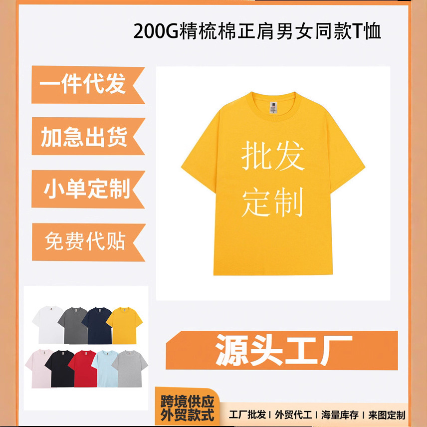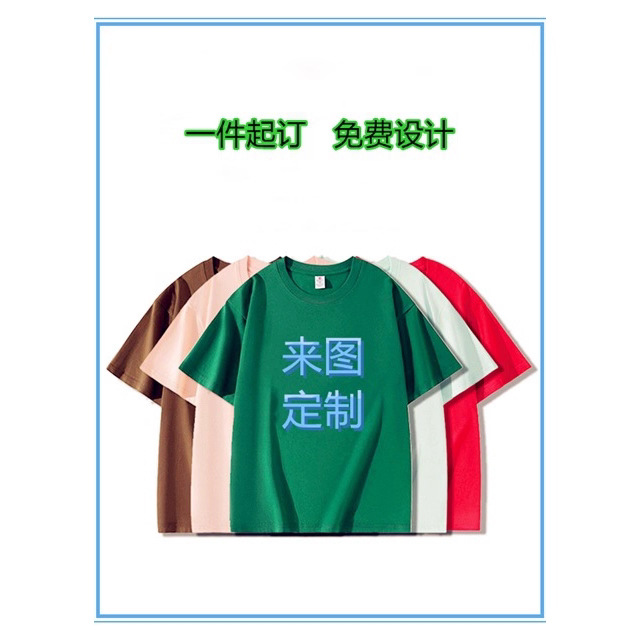 夏季男200克重磅精梳棉T恤纯色潮流时尚宽松潮牌印花休闲打底衫