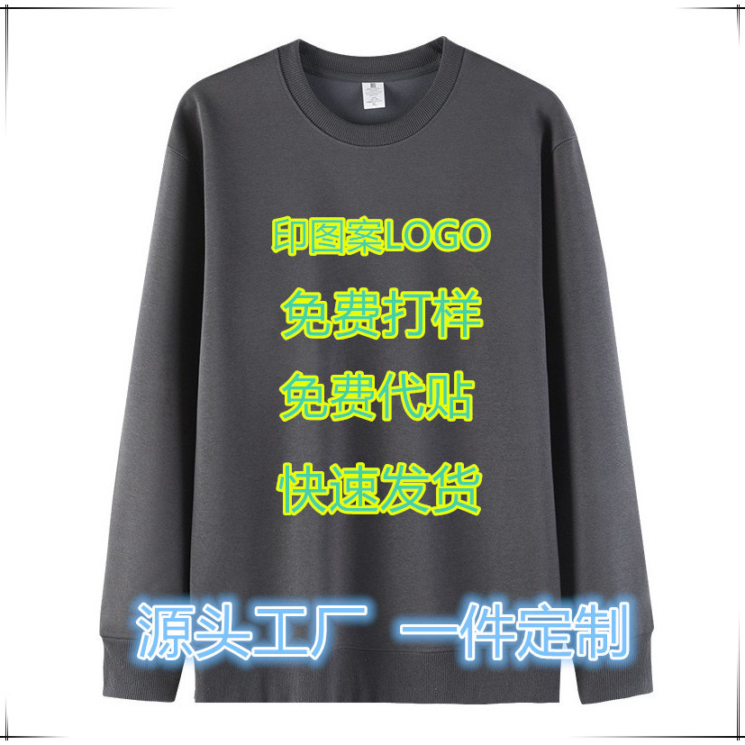 春秋季圆领卫衣跨境260克男女同款宽松外搭纯色长袖衬衣宽松显瘦