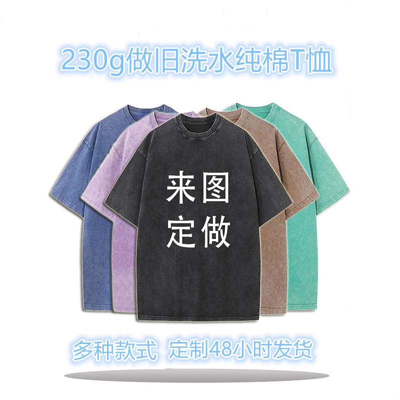230g复古炒雪花水洗T恤欧美跨境t宽松圆领套头重磅t恤男