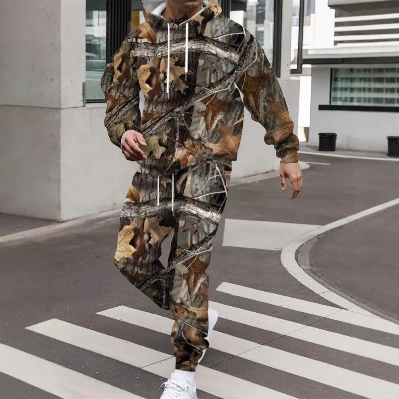 跨境新款数码印花连帽衫长裤 男女休闲2件套春秋时尚3D卫衣套装男
