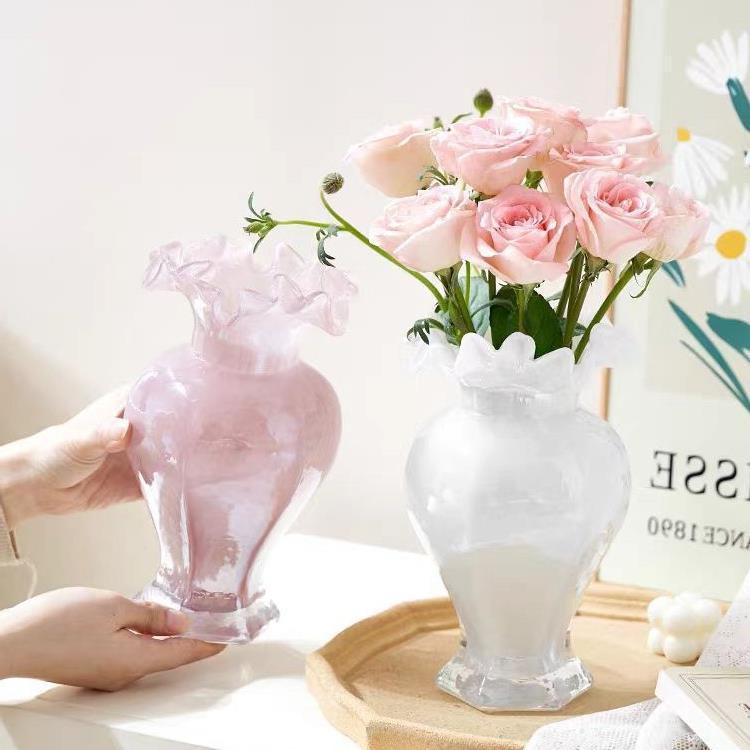 新品法式中古玻璃花瓶高级感摆件高颜值水培插花装饰餐桌家居简约