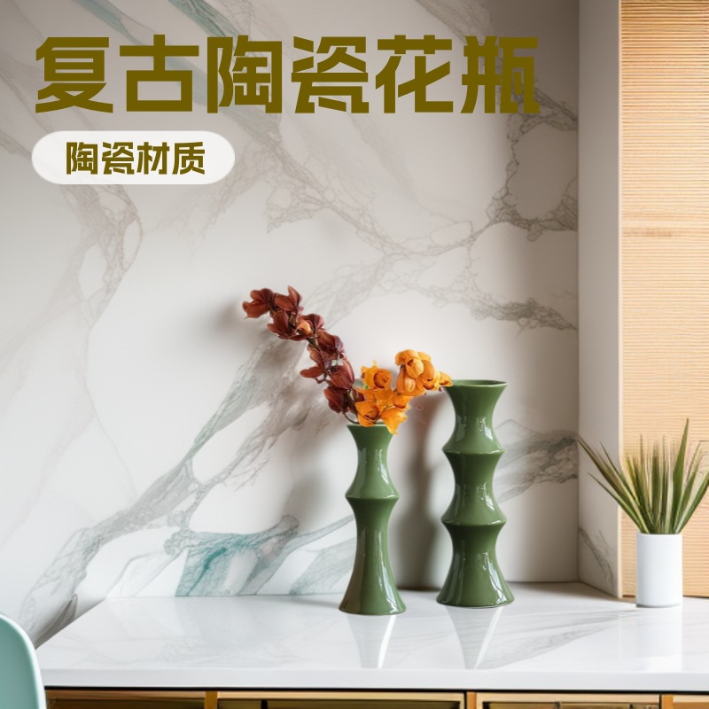 新款复古陶瓷节节高升新中式陶瓷花瓶高端家居玄关桌面办公室摆件