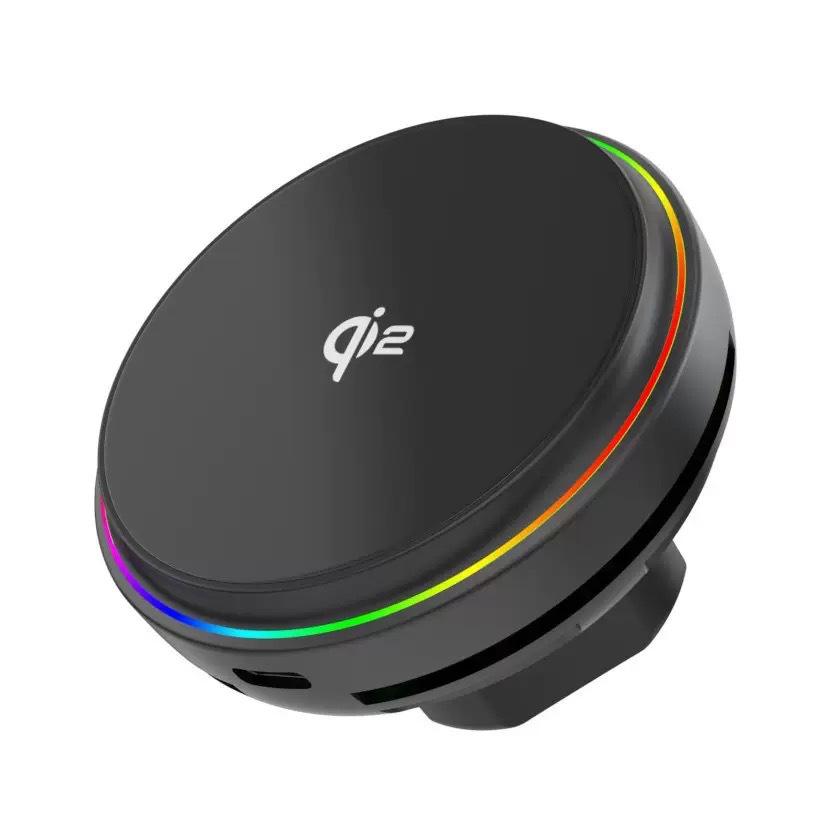 QI2.2半导体制冷25W磁吸车载无线充电器适用苹果LED氛围灯支架