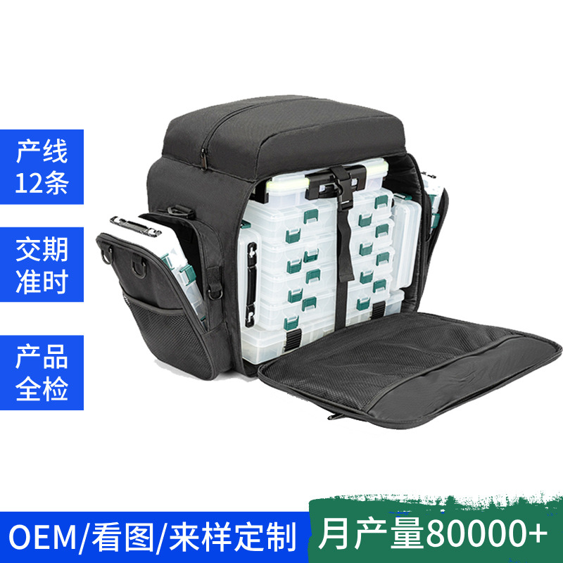 定制亚马逊渔具背包包大容量渔具收纳背包源头厂家黑色渔具收纳包
